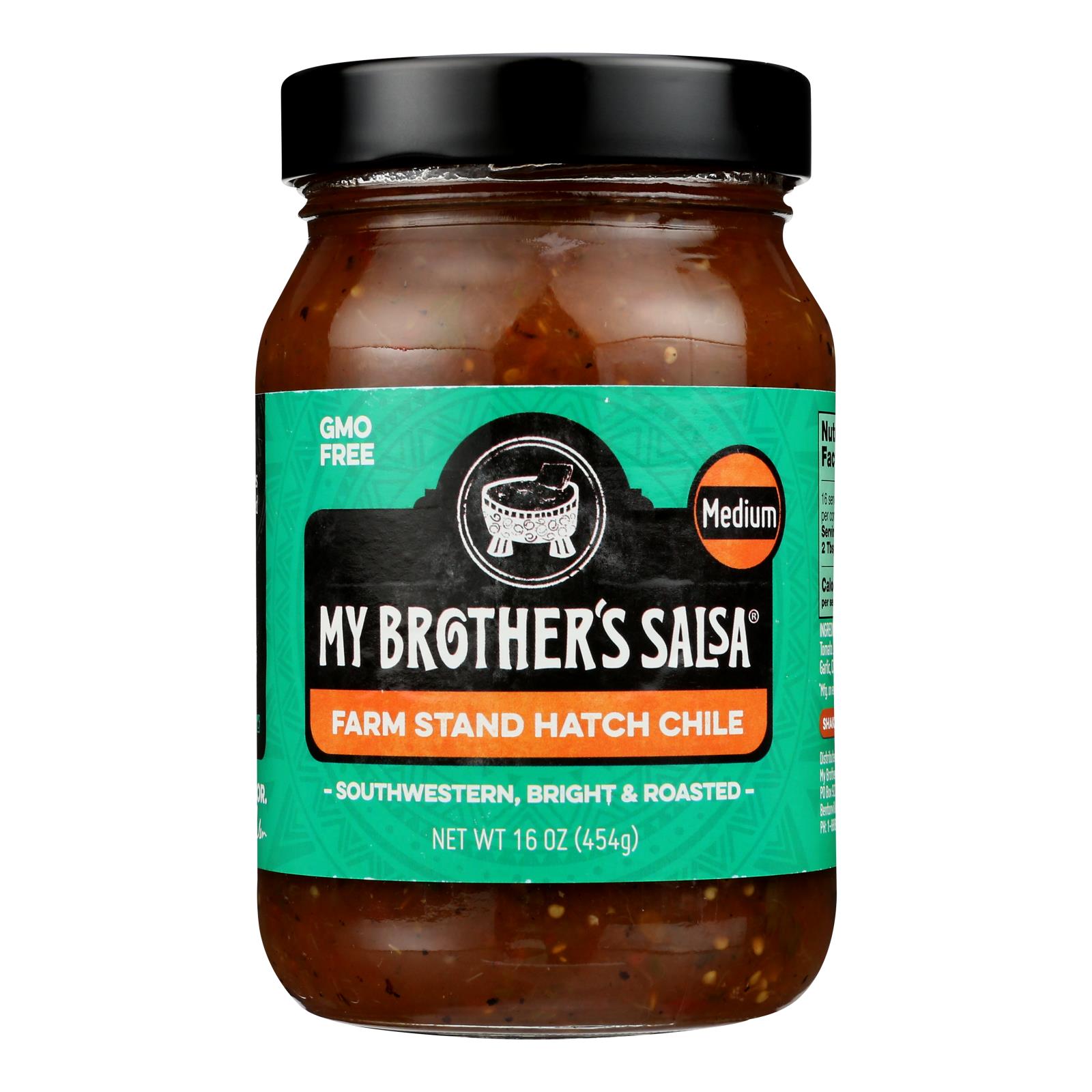My brother’s salsa – salsa frmstd swbrt/rst md – case of 6 – 16 ozcountry of origin : united statesis gmo free : yessize : 16 ozpack of : 6selling unit : caseingredients : tomatillos;roasted tomatoes in tomato juice;tomatoes in tomato juice;hatch green chile peppers;onion;roasted jalapeno peppers;garlic;cilantro;lime juice with natural flavor;sea salt