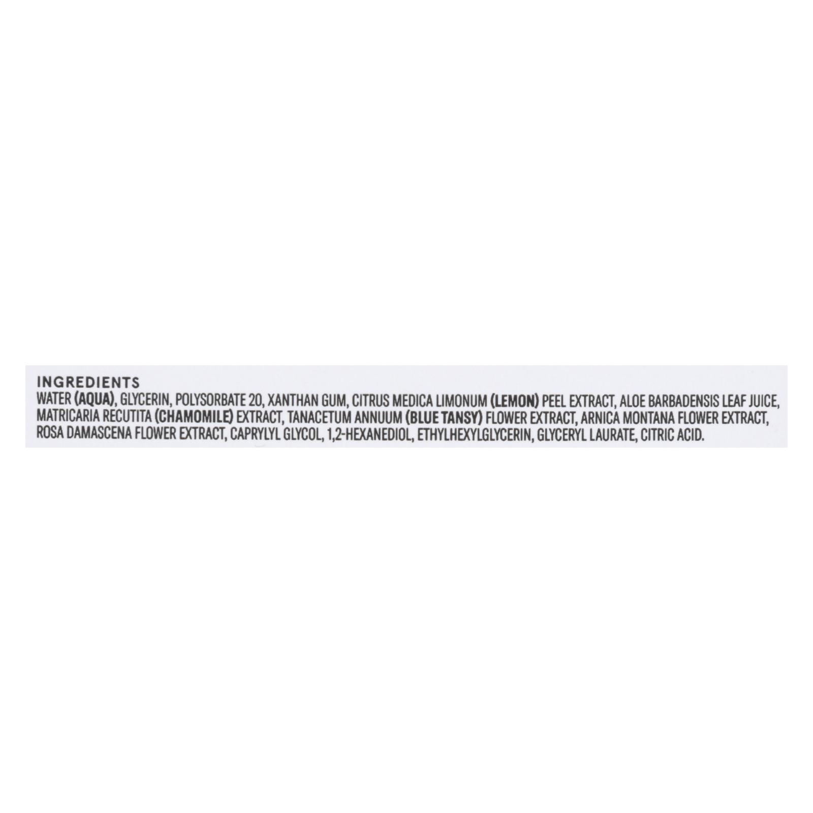 ingredients : water;aqua;glycerin;polysorbate 20;xanthan gum;citrus medica limonum;lemon;peel extract;aloe barbadensis leaf juice;matricaria recutita;chamomile;extract;tanacetum annuum;blue tansy;flower extract;arnica montana flower extract;rosa damascena flower extract;caprylyl glycol;1;2-hexanediol;ethylhexylglycerin;glyceryl laurate;citric acid