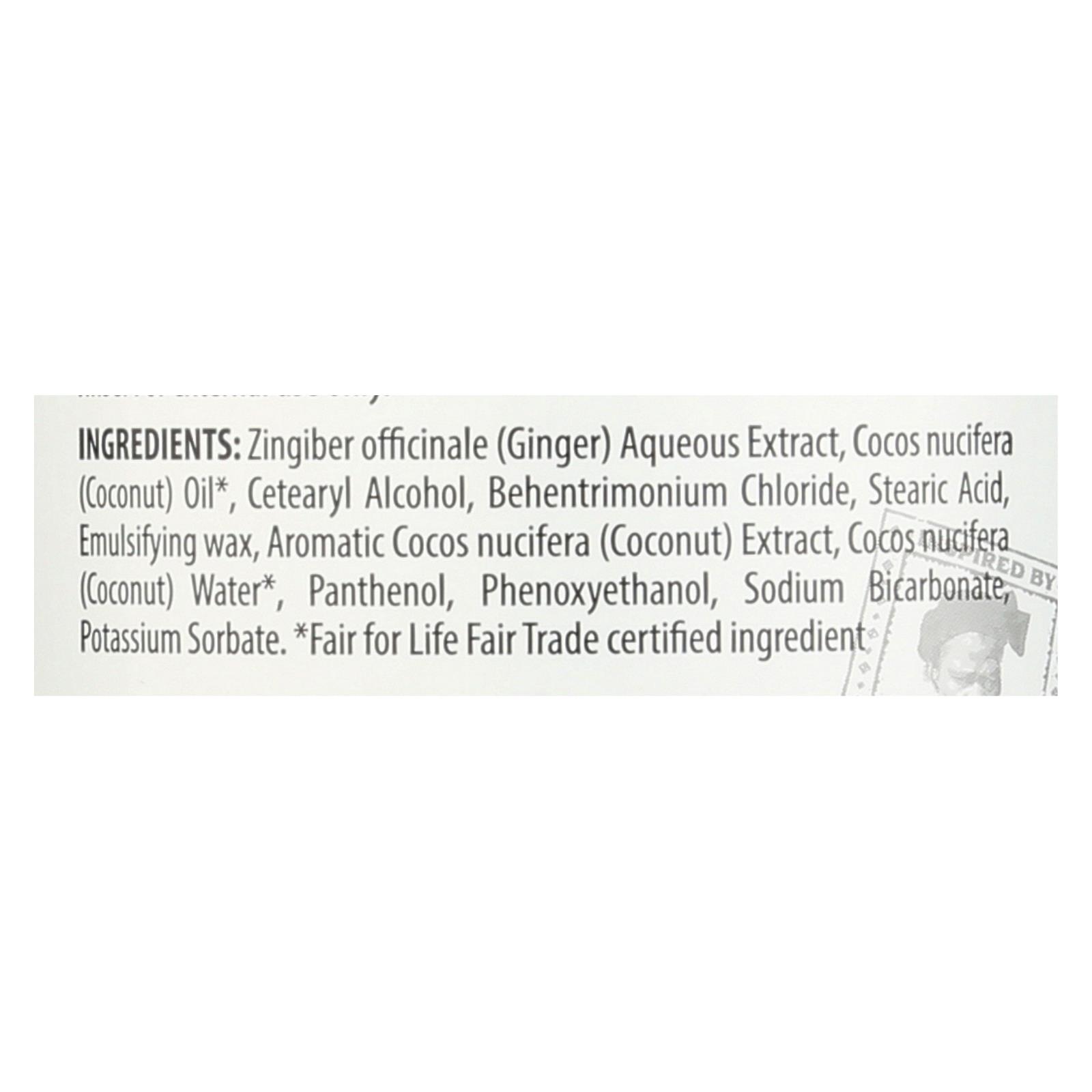 ingredients : zingiber officinale;ginger;aqueous extract;cocos nucifera;coconut;oil;cetearyl alcohol;stearic acid;behentrimonium chloride;emulsifying wax;water;panthenol;phenoxyethanol;sodium bicarbonate;potassium sorbate;extract