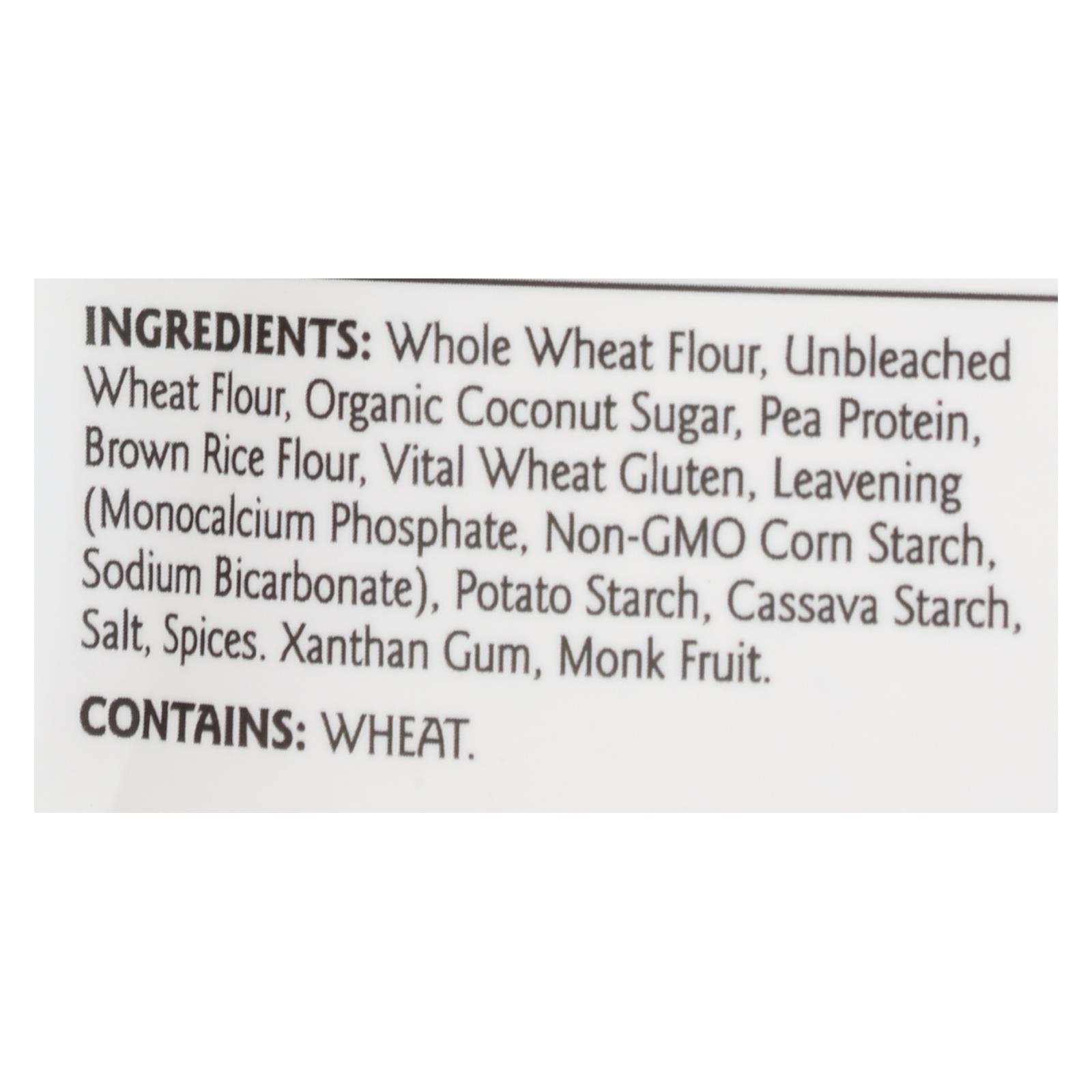 ingredients : whole wheat flour;unbleached wheat flour;organic coconut sugar;pea protein;brown rice flour;vital wheat gluten;leavening;monocalcium phosphate;non-gmo corn starch;sodium bicarbonate;potato starch;cassava starch;salt;spices;xanthan gum;monk fruit