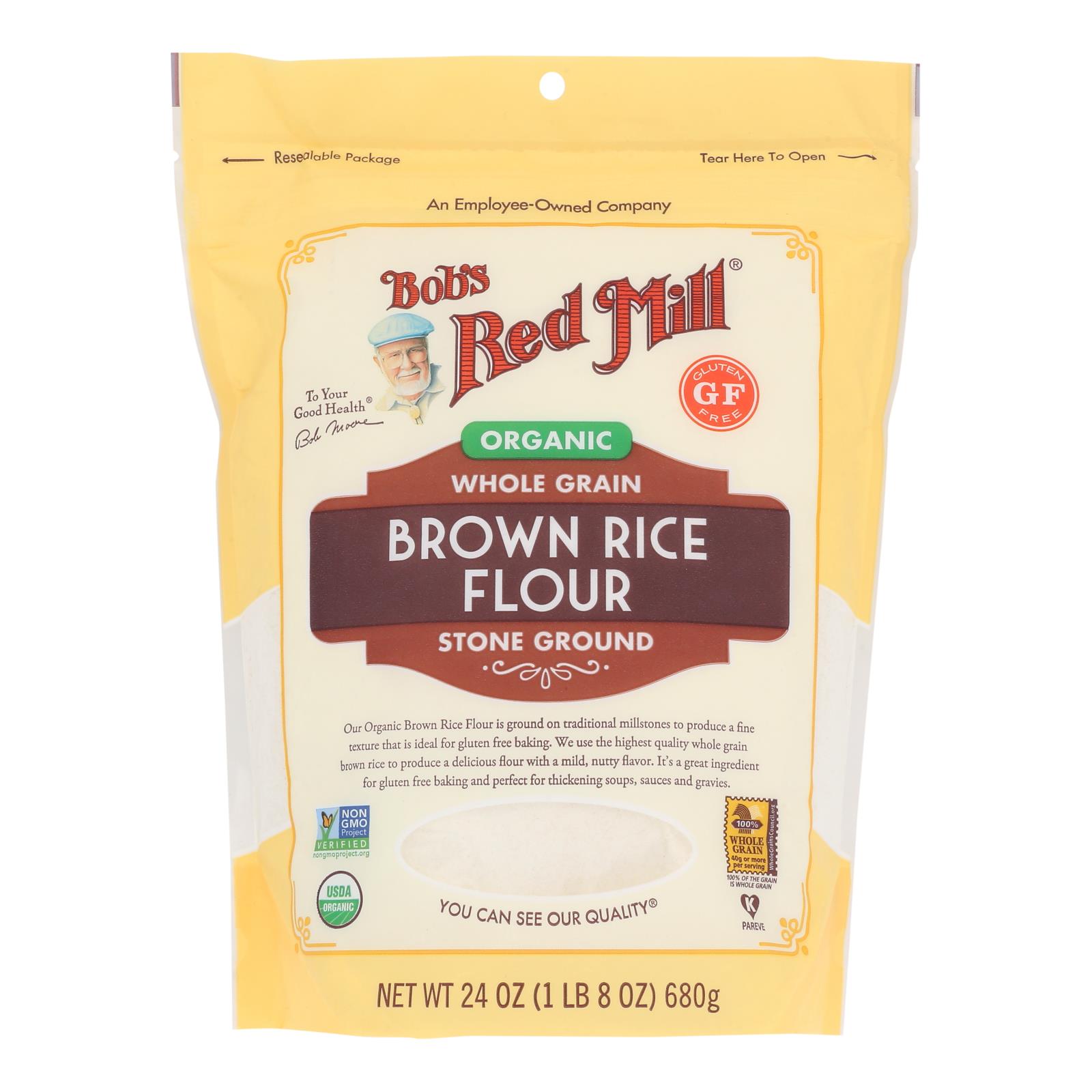 Usda organic. Certified organic by qai. 100% whole grain. 40 g or more per serving. 100% of the grain is whole grain. Wholegrainouncil.org. Tested and confirmed gluten free in our quality control laboratory. Non gmo project verified. Nongmoproject.org. An employee-owned company. To your good health. – bob moore. Our organic brown rice flour is ground on traditional millstones to produce a fine texture that is ideal for gluten free baking. We use the highest quality whole grain brown rice to produce a delicious flour with a mild, nutty flavor. It’s great ingredient for gluten free baking and perfect for thickening soups, sauces and gravies. You can see our quality. Dear friends, our mission has always been to offer the most diverse array of stone ground, whole grain products. We also realize how important a gluten free diet is to millions of people, which is why we inspect all farm deliveries and process, package and test our gluten free rice flour in our dedicated gluten free facility. In doing so, we know we’re providing delicious, nourishing food that you and your family can trust, which makes it all worth the effort. To your good health, – bob moore. Bobsredmill.com. Find more recipes at bobsredmill.com. For information and recipes, visit bobsredmill.com. Resealable package.