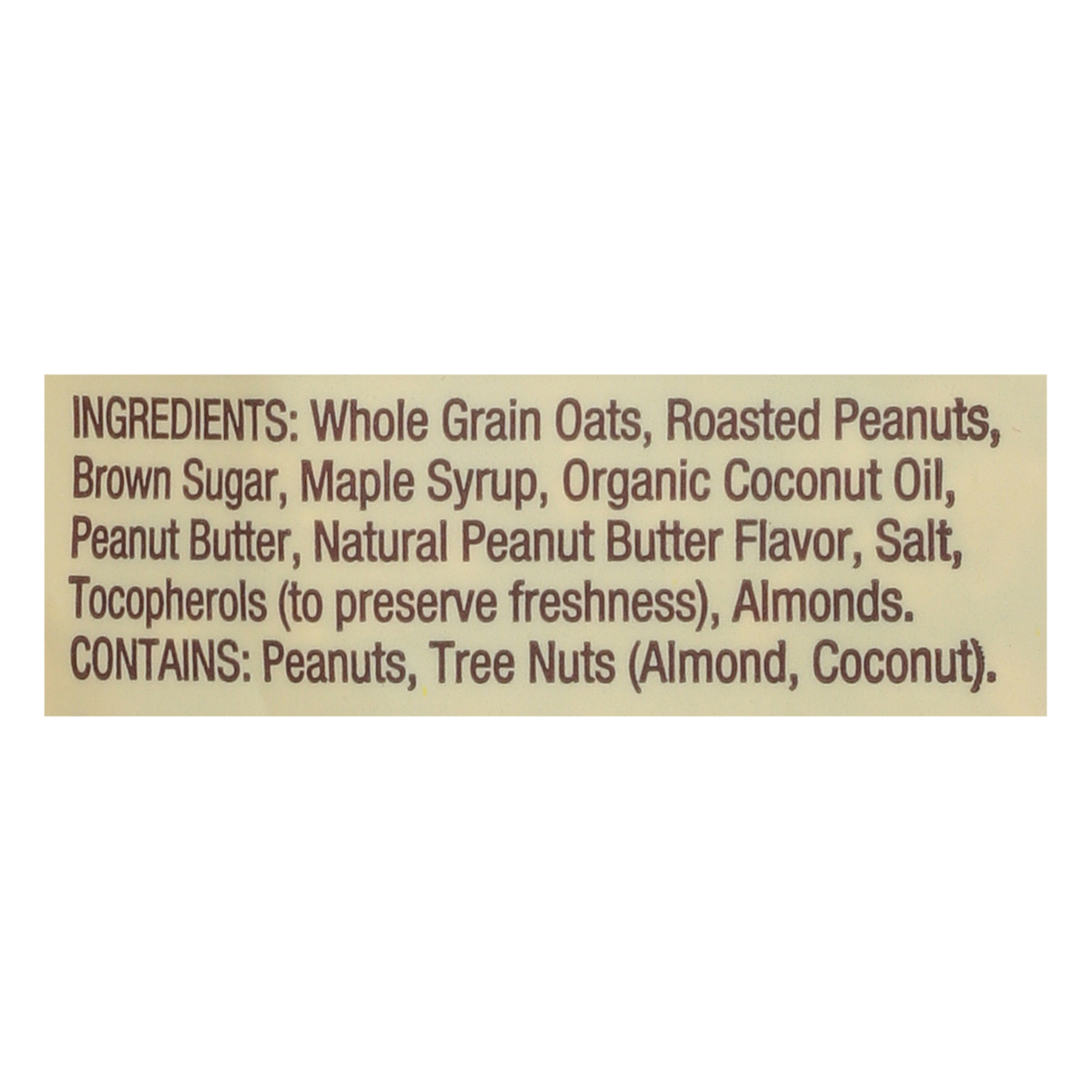 ingredients : whole grain oats;roasted peanuts;brown sugar;maple syrup;organic coconut oil;peanut butter;natural peanut butter flavor;salt;tocopherols (to preserve freshness);almonds