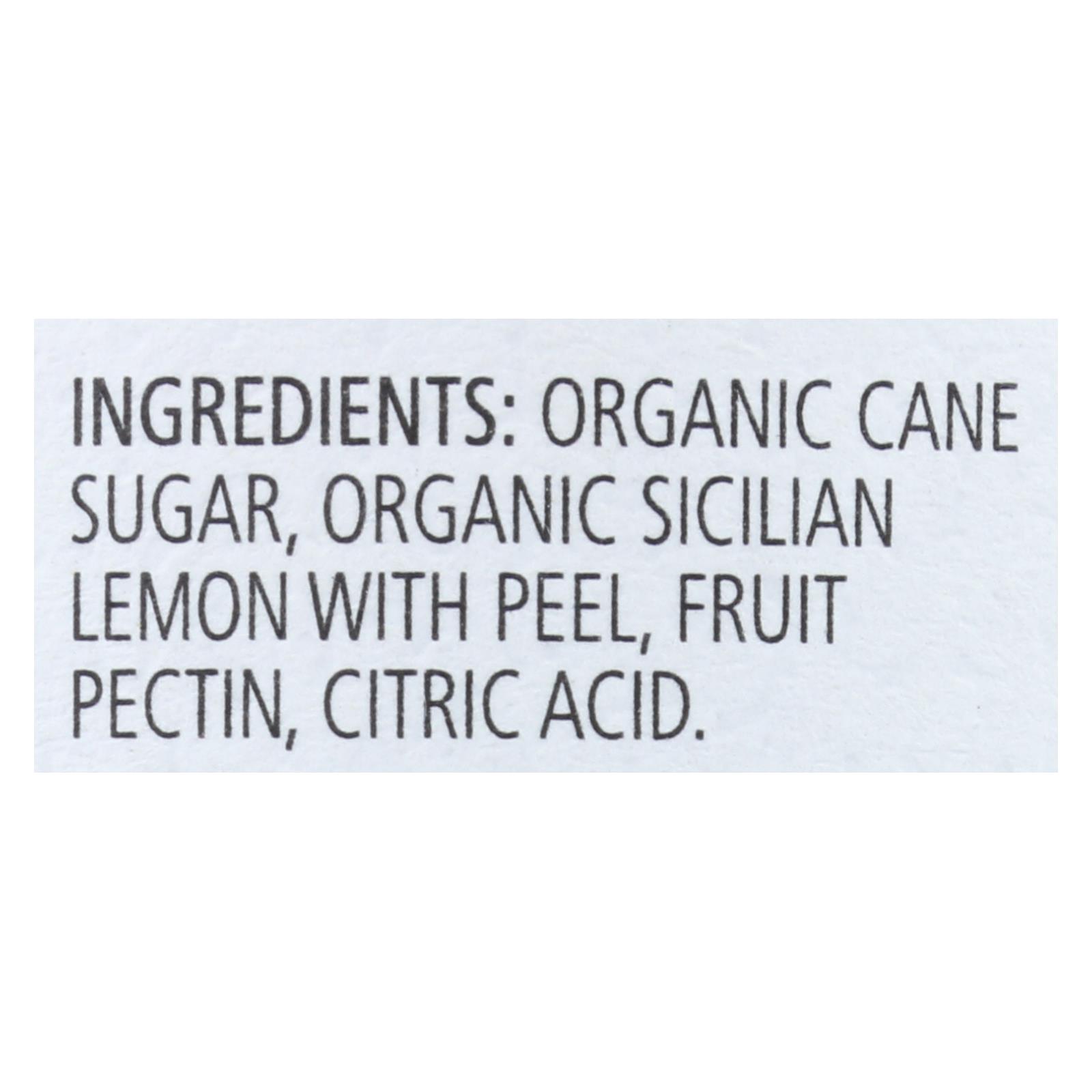 ingredients : organic cane sugar;organic sicilian lemon with peel;fruit pectin;citric acid