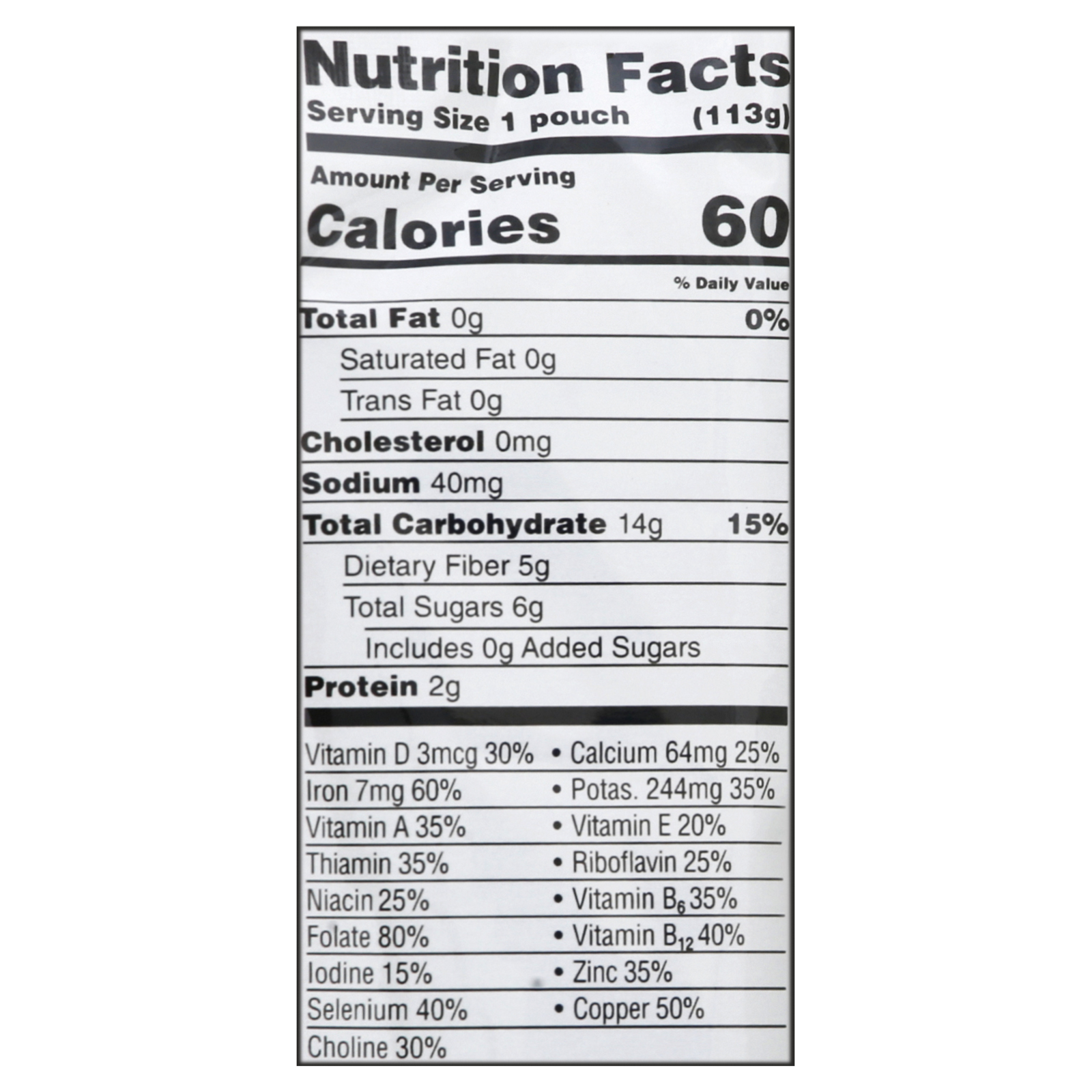 ingredients : organic spinach;organic sweet potatoes;organic apples;organic pears;organic nutrient blend (organic tapioca fiber, nutrients derived from [chlorella, kelp, pumpkin seeds, spinach, sunflower seeds, maitake mushrooms]);dha algal oil