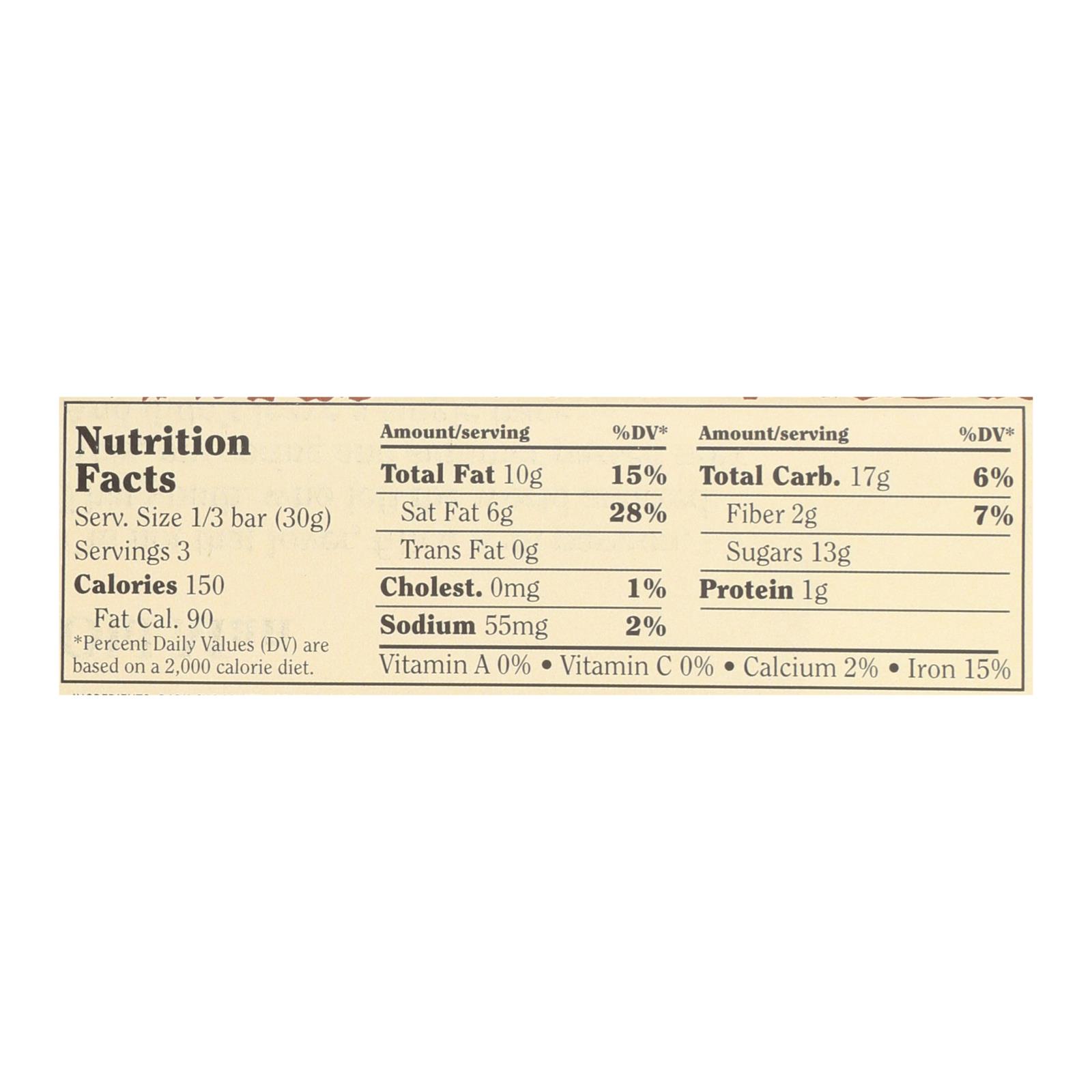 ingredients : dark chocolate (cocoa liquor**, sugar, cocoa butter**, soy lecithin and/or sunflower lecithin, vanilla);organic caramel (organic tapioca syrup, organic cane sugar, organic milk, organic cream, organic butter (cream, salt), salt, sodium citrate, organic vanilla extract, organic soy lecithin, pectin, vitamin e (mixed tocopherols));organic palm fruit oil sea salt