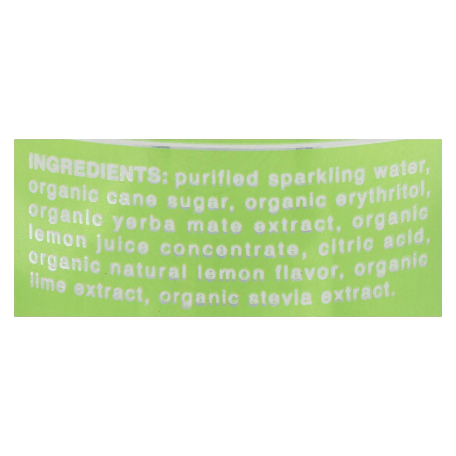 ingredients : purified sparkling water;organic cane sugar;organic erythritol;organic yerba mate extract;organic lemon juice concentrate;citric acid;organic lemon extract;organic lime extract;organic lemon emulsion;organic stevia extract