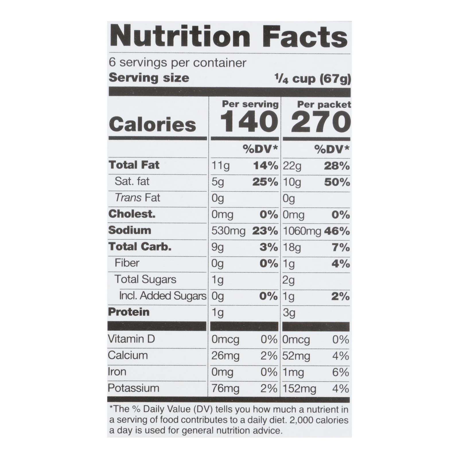 ingredients : filtered water;expeller pressed: canola and/or safflower oil, tapioca starch, coconut oil, vegan natural flavors, onions, green jalapeno peppers, red bell peppers, acacia gum, pea protein, tomatoes, sea salt, cane sugar, garlic, xanthan gum, lactic acid (vegan), titanium dioxide color (naturally occuring mineral), green bell peppers, annatto color, inactive yeast, yeast extract
