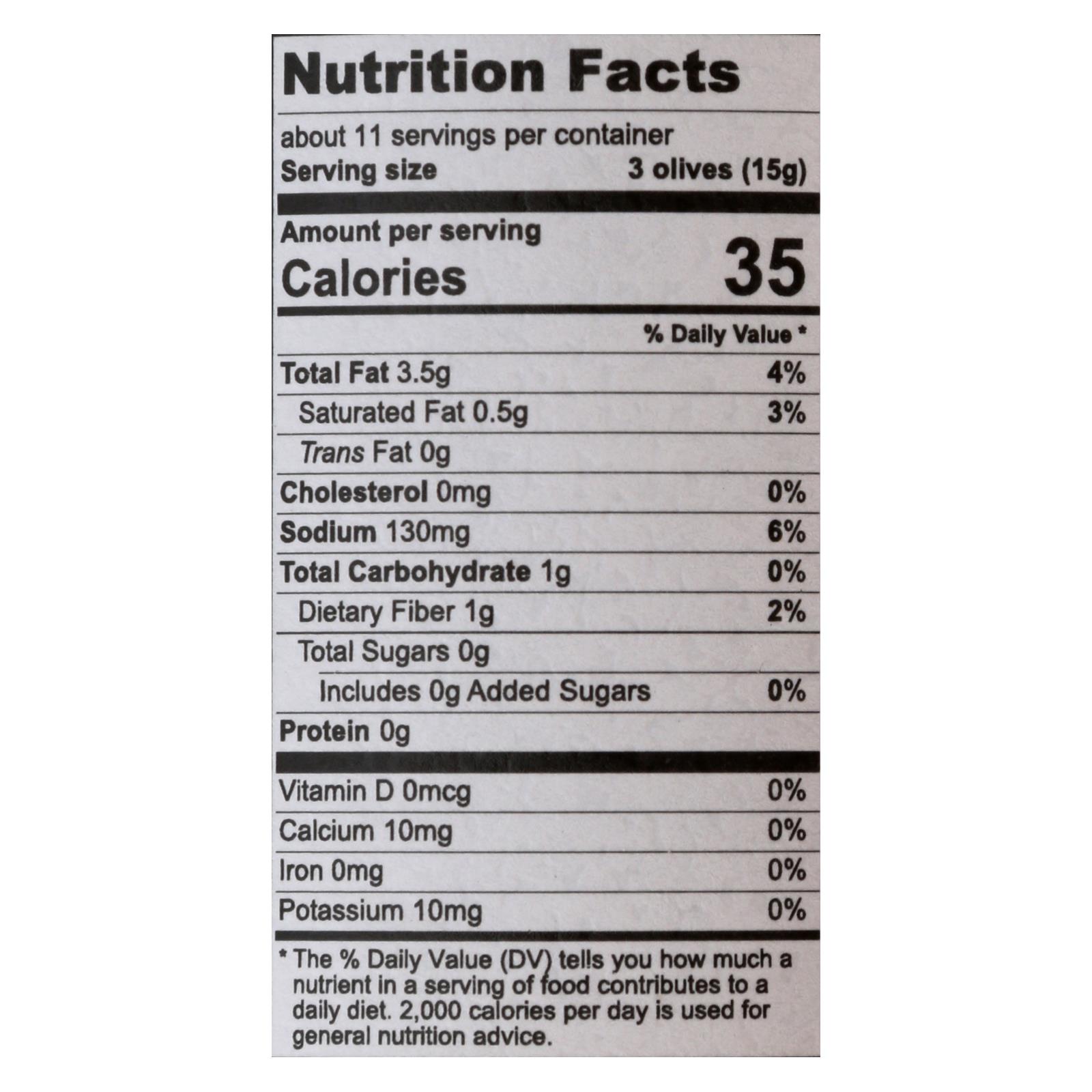 ingredients : organic olives;water;salt;lactic acid;acidity regulator