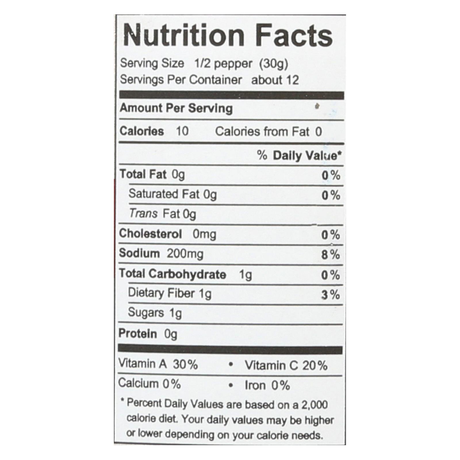 Divina, roasted sweet peppers are organic and non-gmo. This product comes to you in a convenient, easy-to-open glass jar. Each ½ pepper. Serving contains 10 calories and 3% of recommended daily value of fiber. Divina, roasted sweet peppers are hand-harvested and fire-roasted florina peppers. This product has a smoky, fruity flavor and is best enjoyed in lasagna or paired with fresh mozzarella and salami. Every cup of divina, roasted sweet peppers contains 16.2 oz. Of product.