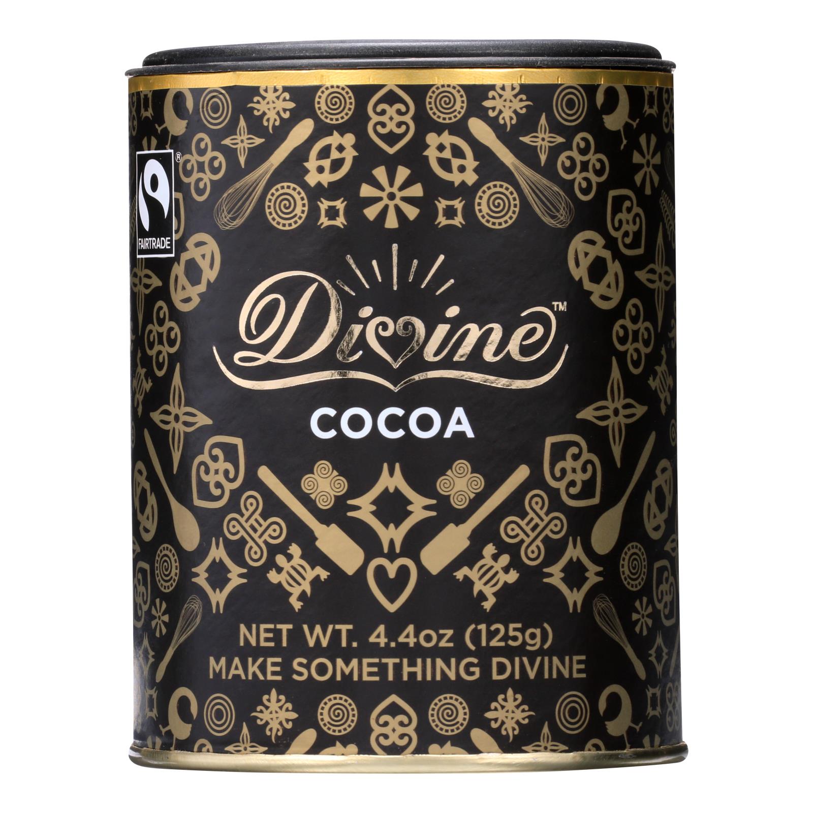 Divine chocolate, cocoa is truly a divine treat. This product is hand harvested, shade grown, and slow fermented to deliver a rich chocolate taste that makes farmers proud and your recipes divine. Each 1 tsp. Serving of divine chocolate, cocoa contains only 10 calories and 1 g. Of protein. Every canister contains 4.4 oz. Of product. This product is manufactured in a facility that also processes milk, soy and wheat. Please see nutritional facts panel for information concerning possible allergens associated with this product.
