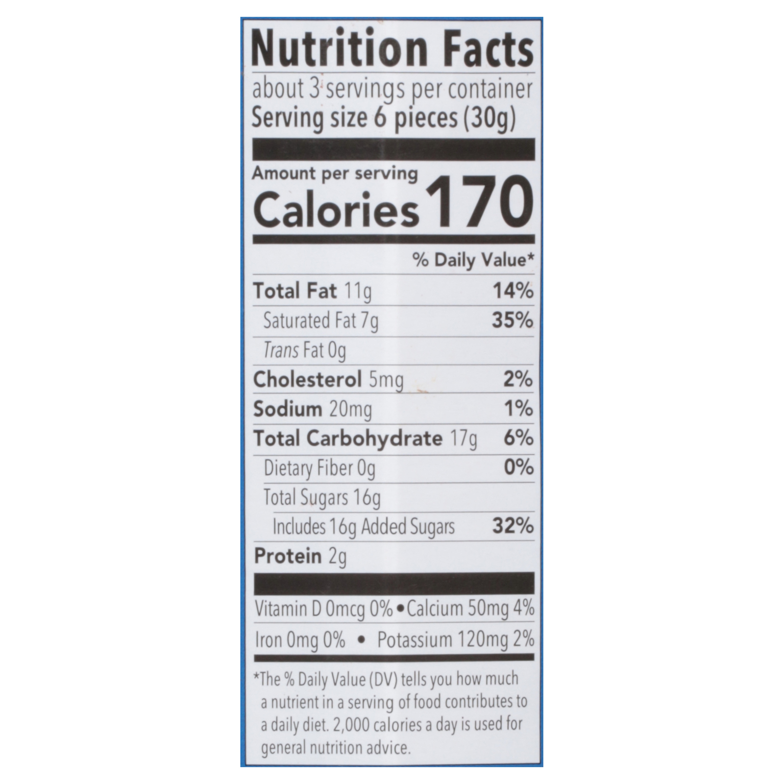 ingredients : sugar;cocoa butter;whole milk powder;chocolate liquor processed with alkali;milk fat;soy lecithin;natural vanilla flavor