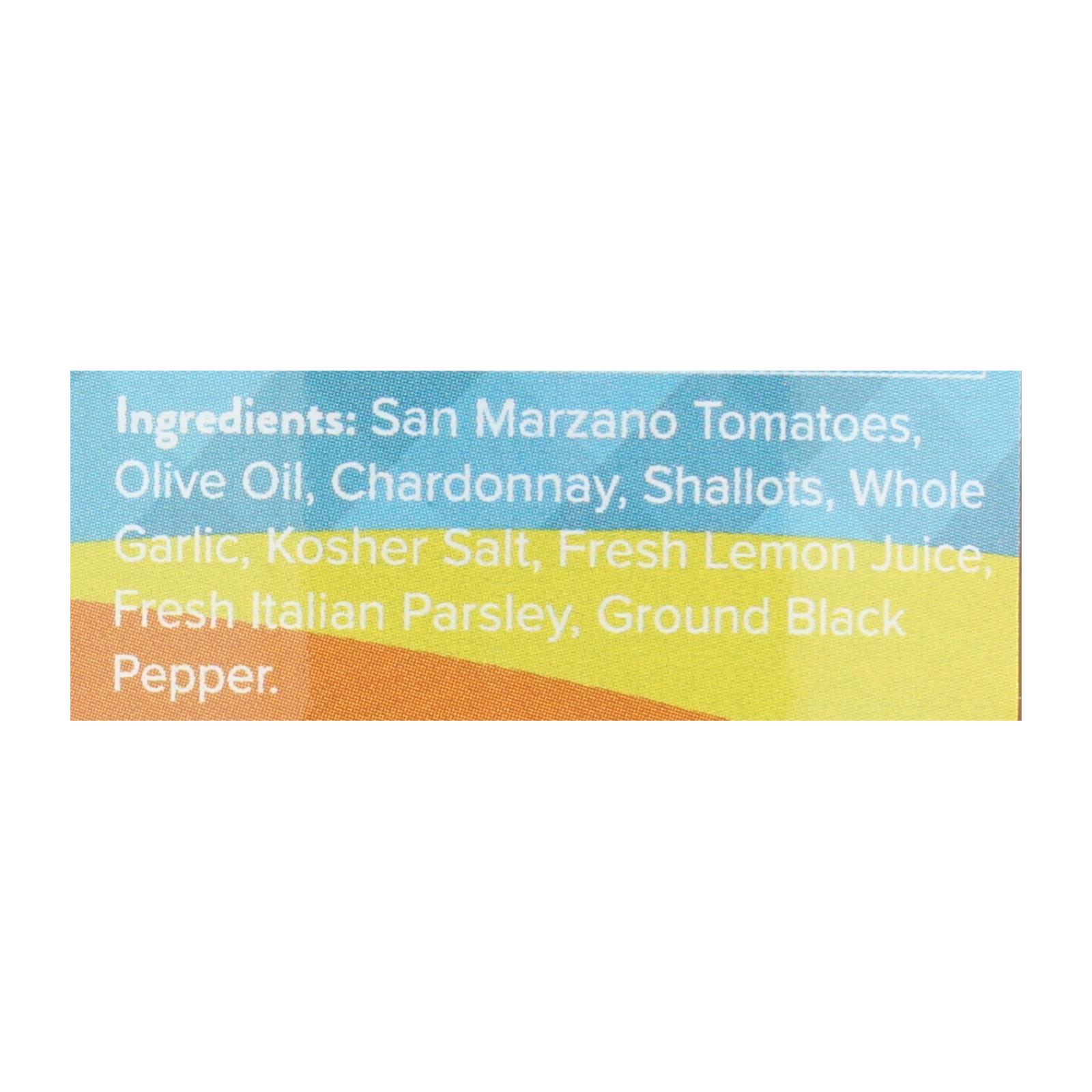 ingredients : san marzano tomatoes;olive oil;chardonnay;shallots;whole garlic;kosher salt;fresh lemon juice;fresh italian parsley;ground black pepper