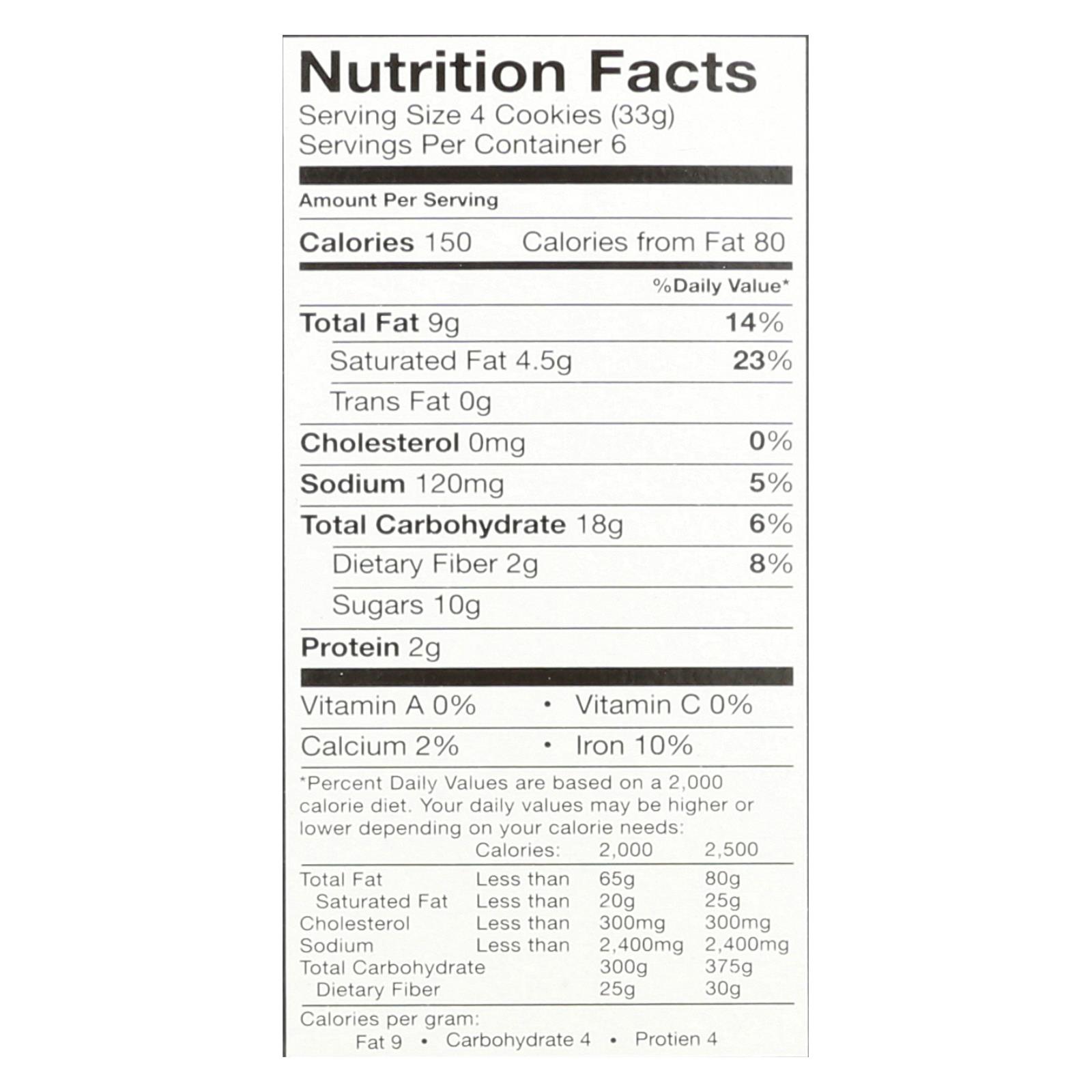 ingredients : chocolate coating;unsweetened chocolate;sugar;cocoa butter;soy lecithin [an emulsifier];vanilla extract;goodie girl flour;white rice flour;corn starch;tapioca flour;powdered milk;potato starch;xanthan gum;palm oil;organic cocoa processed with alkali organic non fat dry ilk powder;contains 2% or less natural vanilla extract;salt and sodium bicarbonate