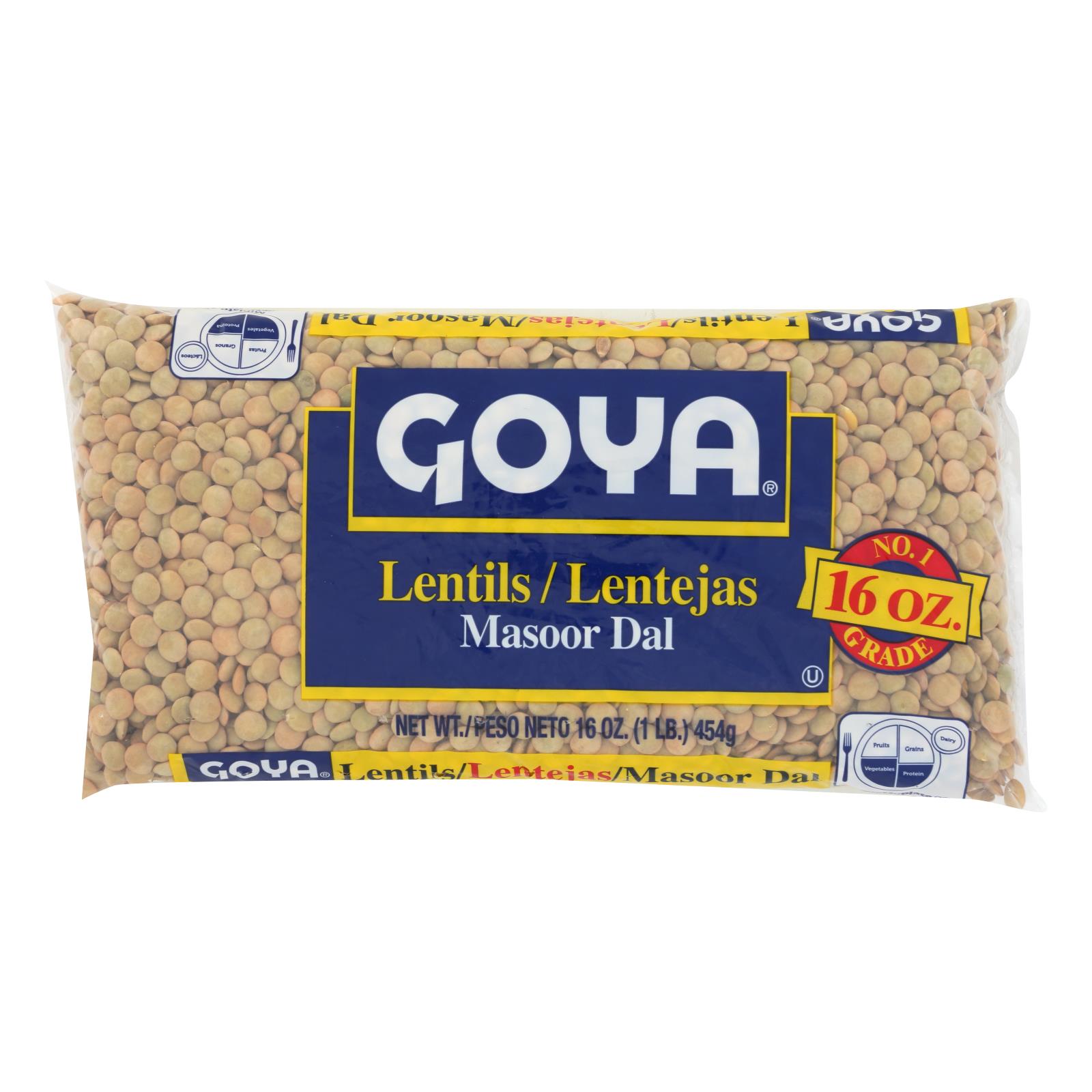 Goya bagged dry lentils are a healthy ingredient for soups, salads, dips and spreads, making them a versatile staple for your pantry. Our lentils deliver 11 g. Of protein and 5 g. Of dietary fiber per serving, helping you reach your daily nutritional goals. This product is free of saturated fat, trans fat and cholesterol, and it comes in a 16 oz. Bag for a total of 10 servings.