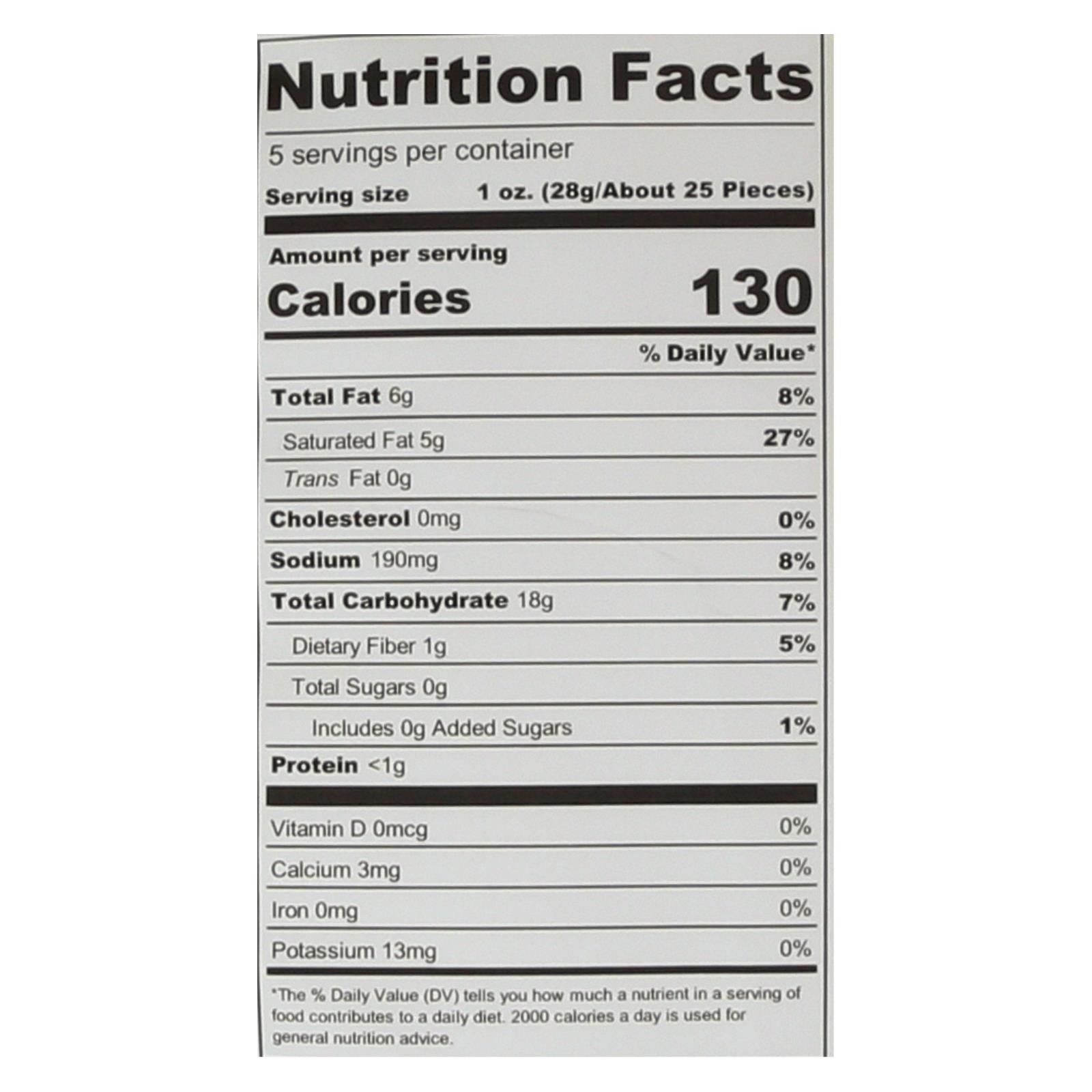 ingredients : organic cassava flour;organic coconut oil;organic tapioca starch;organic tapioca native starch;organic coconut flour;organic tapioca solids;himalayan crystal salt;organic sweet potato powder;organic nutritional yeast;organic flavor;yeast extract;organic garlic powder;organic onion powder;lactic acid;organic ground mustard;organic spices