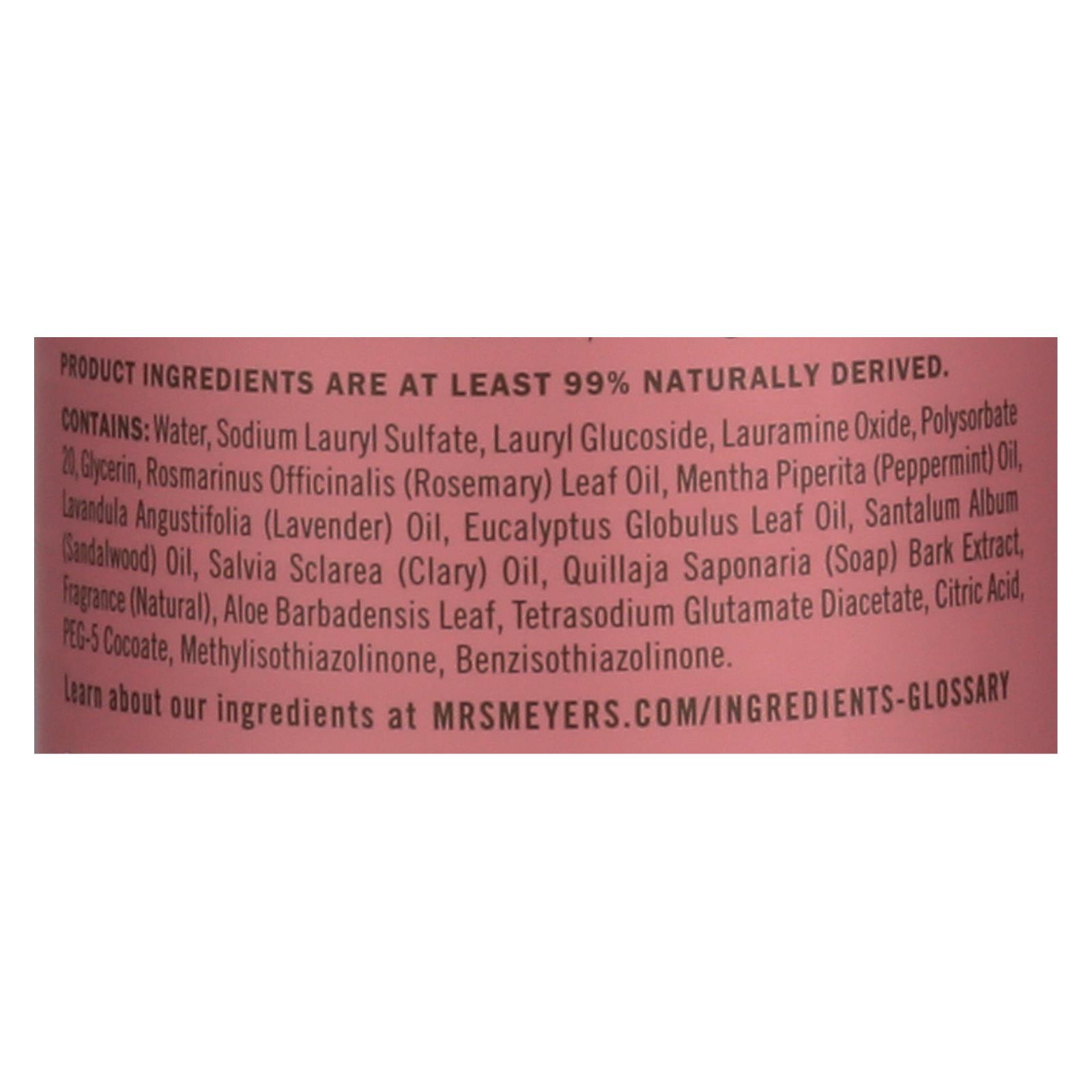 ingredients : contains: water;sodium lauryl sulfate;lauryl glucoside;lauramine oxide;polysorbate 20;glycerin;rosmarinus officinalis;rosemary;leaf oil;mentha piperita;peppermint;oil;lavandula angustifolia;lavender;eucalyptus globulus leaf oil;santalum album;sandalwood;salvia sclarea;clary;quillaja saponaria;soap;bark extract;fragrance;natural;aloe barbadensis leaf;tetrasodium glutamate diacetate;citric acid;peg-5 cocoate;methylisothiazolinone;benzisothiazolinone