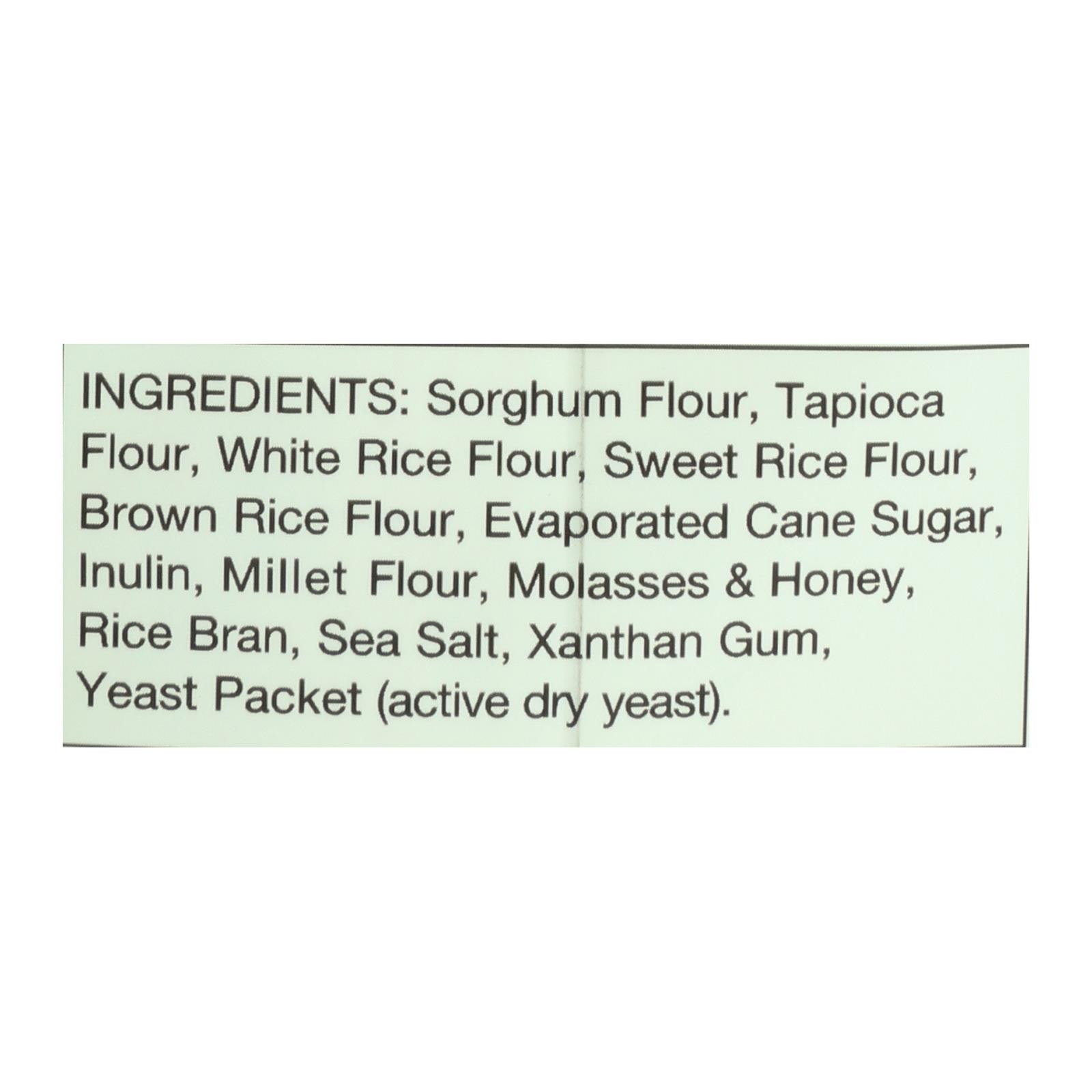 ingredients : sorghum flour;tapioca flour;white rice flour;sweet rice flour;brown rice flour;evaporated cane sugar;inulin;millet flour;honey;rice bran;sea salt;xanthan gum;yeast packet (active dry yeast)
