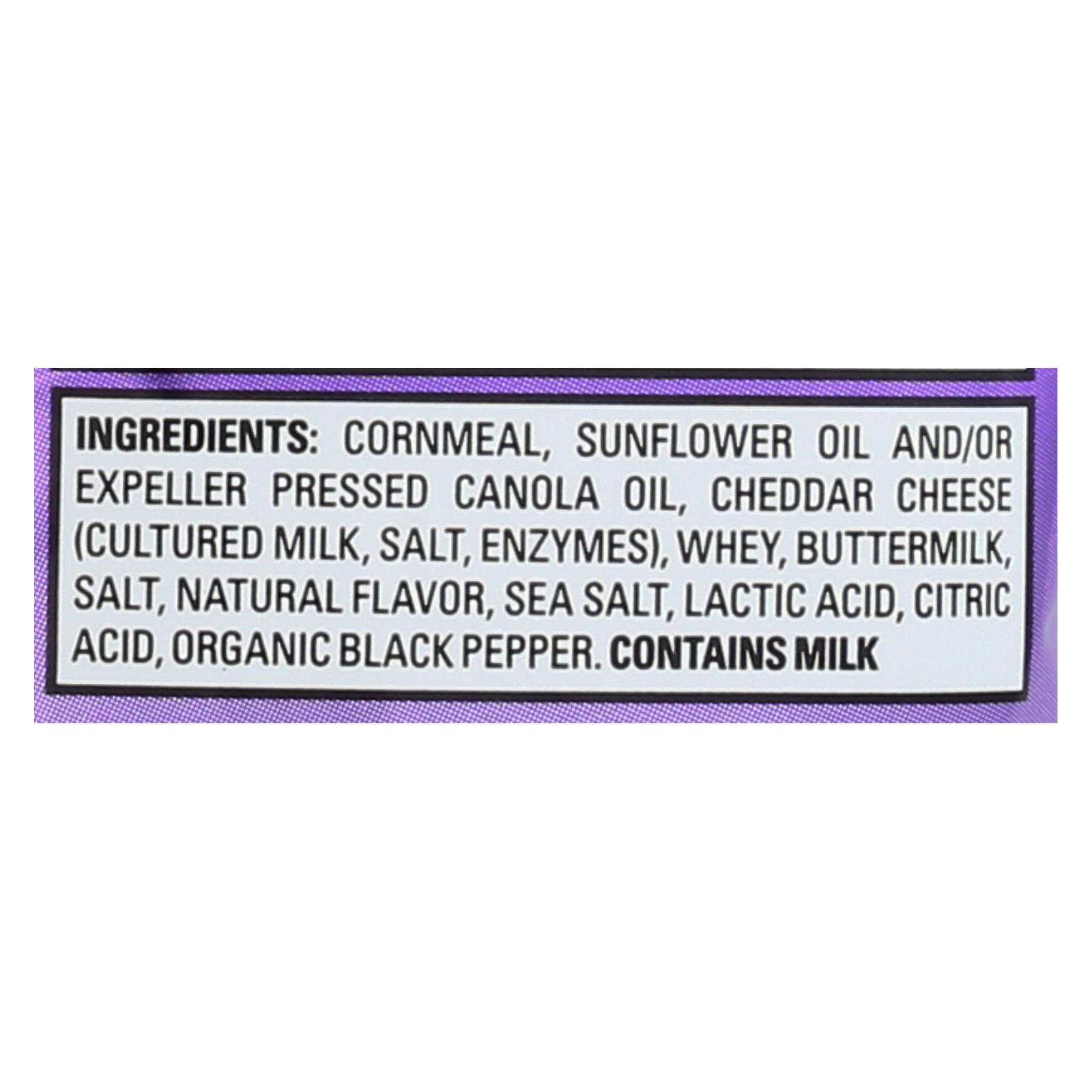 ingredients : cornmeal;sunflower oil and/or expeller pressed canola oil;cheddar cheese;cultured milk;salt;enzymes;whey;buttermilk;natural flavor;sea salt;lactic acid;citric acid;organic black pepper
