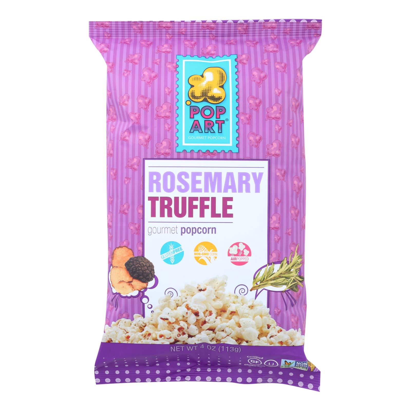 Pop art rosemary truffle gourmet popcorn is a bold, flavor-packed treat that can be enjoyed any time of day. Each delectable bite of savory corn packs a punch that leaves you wanting more with every piece. Each 4 oz. Bag of rosemary truffle popcorn contains just 50 calories and is air-popped for an unforgettable palette experience.