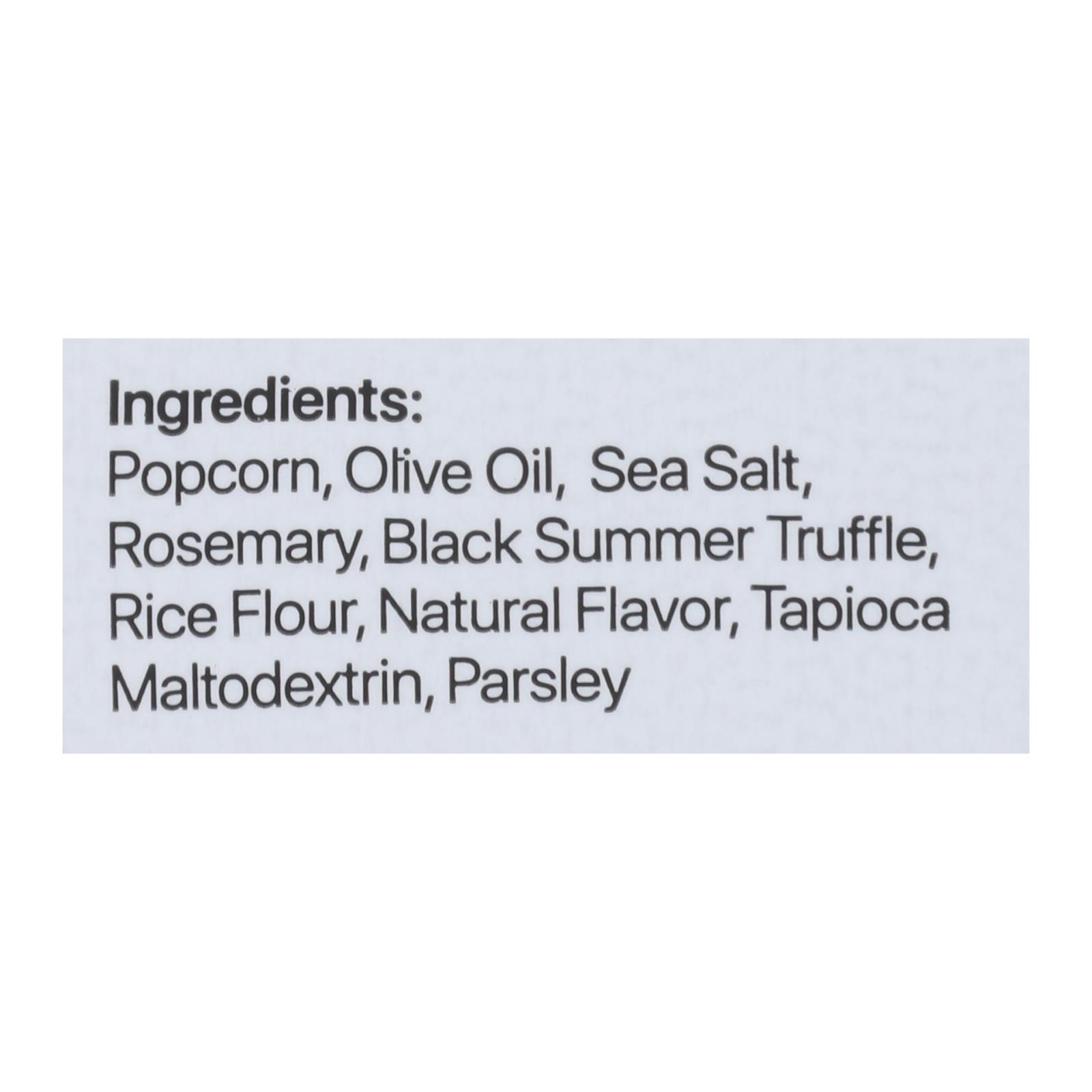 ingredients : popcorn;olive oil;sea salt;rosemary;black summer truffle;rice flour;natural flavor;tapioca maltodextrin;parsley