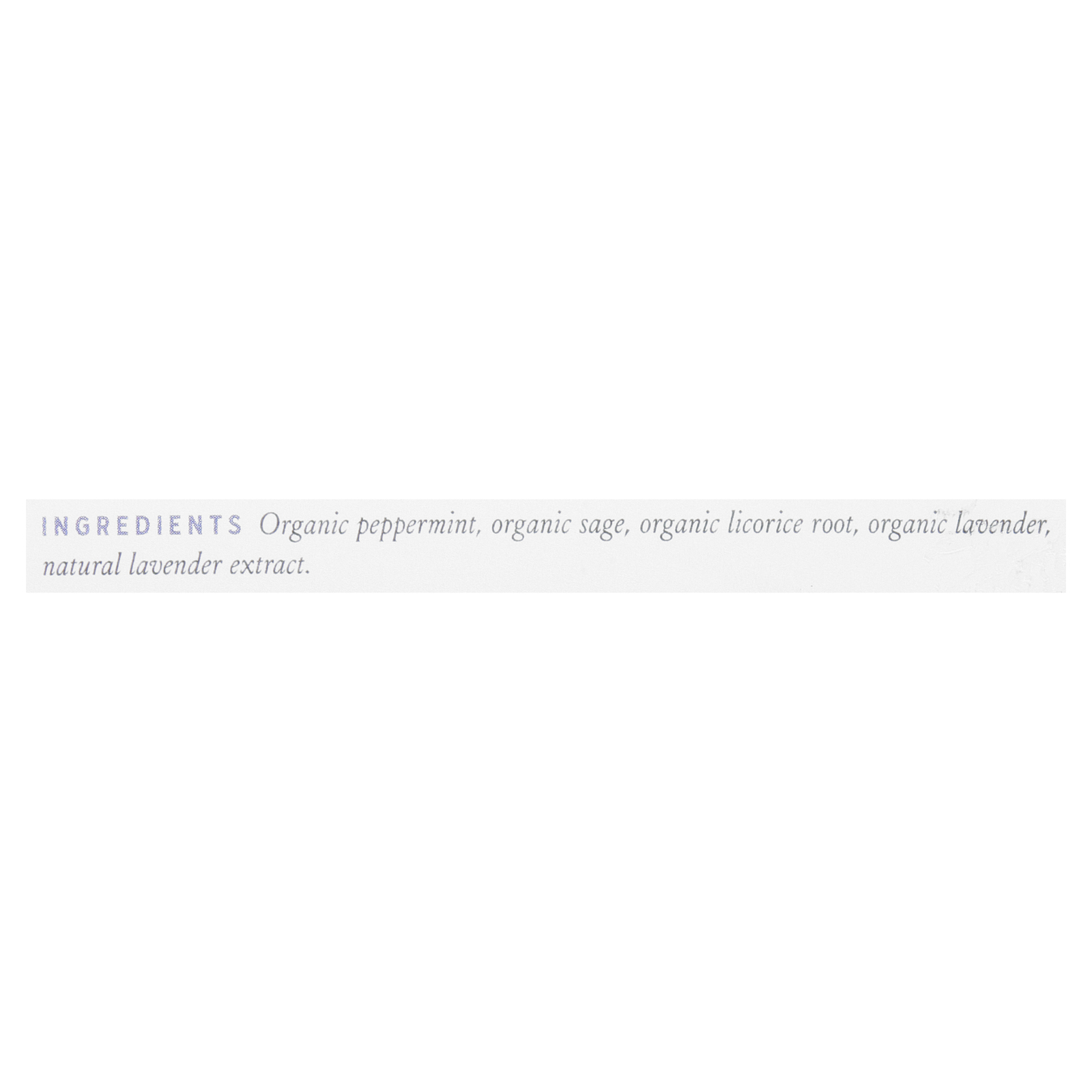 ingredients : organic peppermint;organic sage;organic licorice root;organic lavender;natural lavender extract