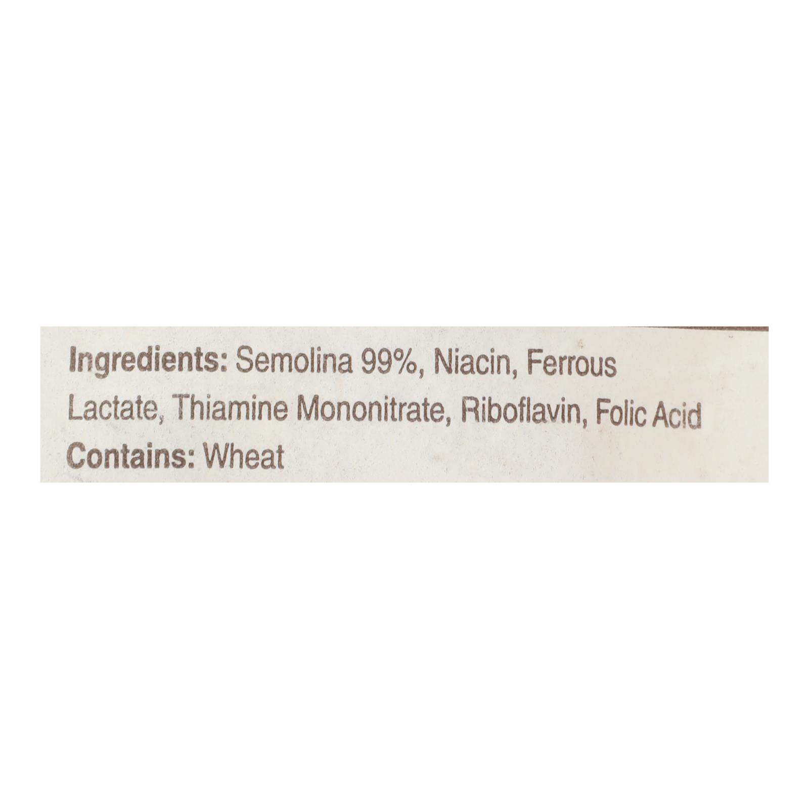 ingredients : semolina 99%;niacin;ferrous lactate;thiamine mononitrate;riboflavin;folic acid