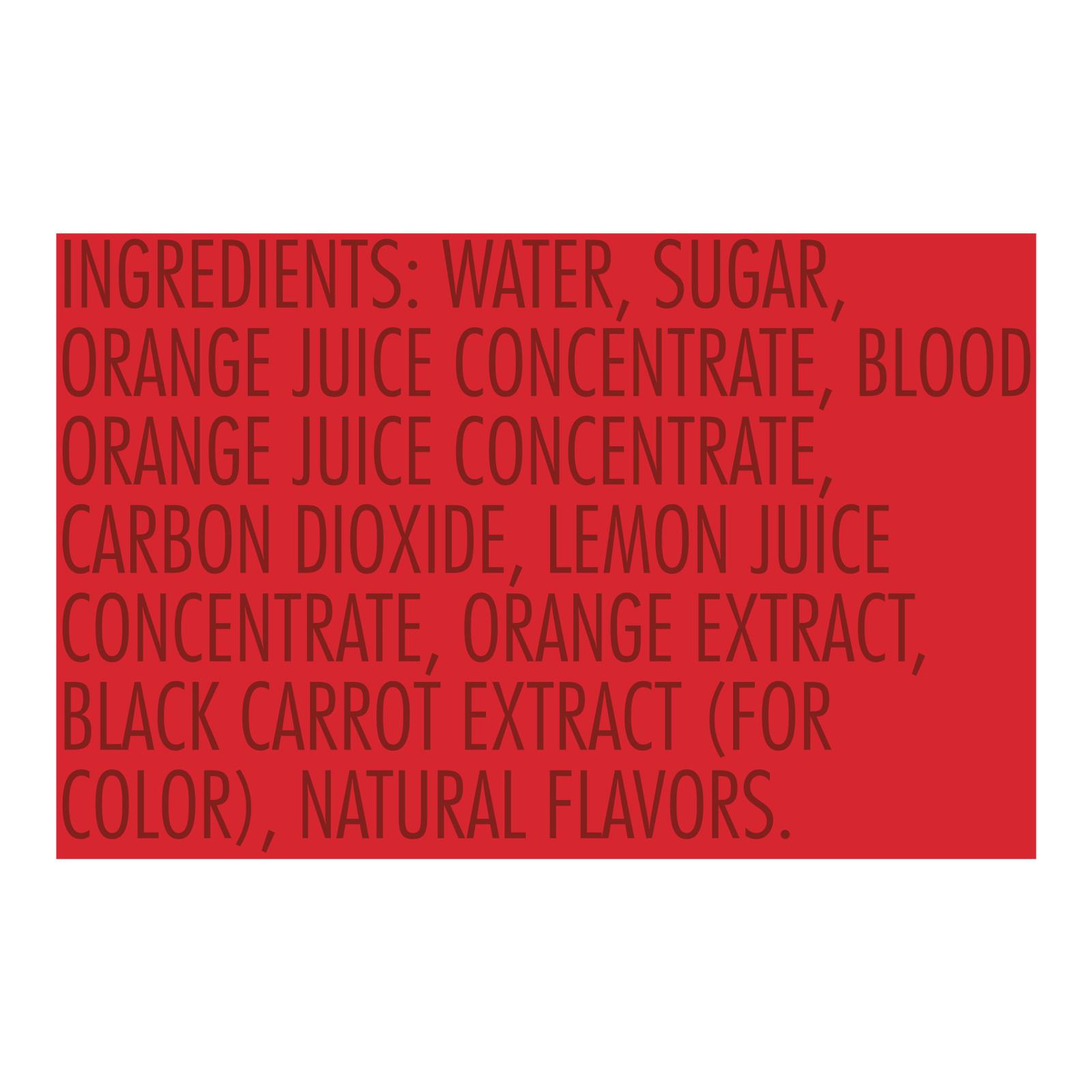 ingredients : water;sugar;orange juice concentrate;blood orange juice concentrate;carbon dioxide;lemon juice concentrate;orange extract;black carrot extract (for color);natural flavors