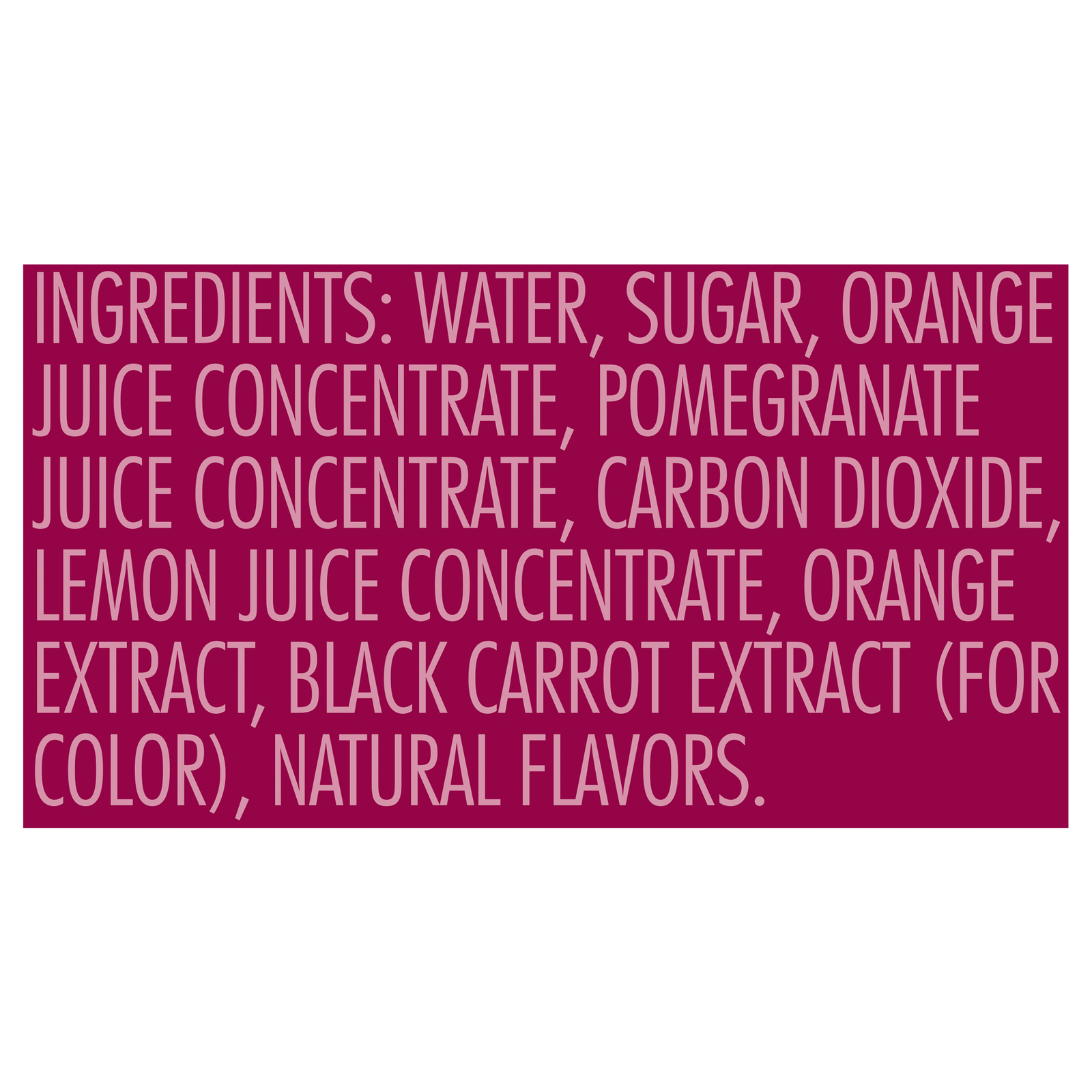 ingredients : water;sugar;orange juice concentrate;pomegranate juice concentrate;carbon dioxide;lemon juice concentrate;orange extract;black carrot extract (for color);natural flavors