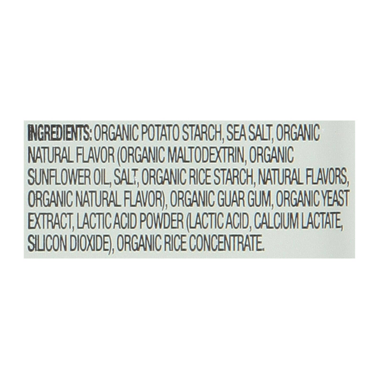 ingredients : organic potato starch;sea salt;organic natural flavor (organic maltodextrin, organic sunflower oil, salt, organic rice starch, natural flavors, organic natural flavor);organic guar gum;organic yeast extract;lactic acid powder (lactic acid, calcium lactate, silicon dioxide);organic rice concentrate
