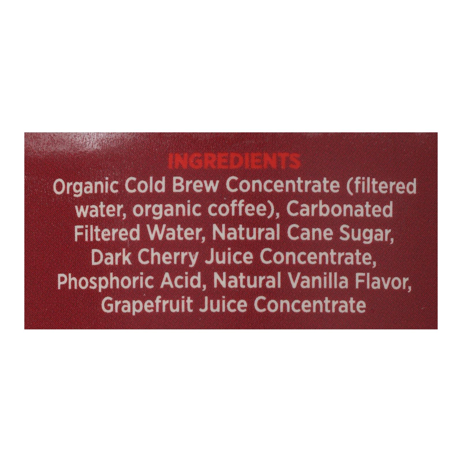 ingredients : organic cold brew concentrate (filtered water, organic coffee);carbonated filtered water;organic cane sugar;dark cherry juice concentrate;phosphoric acid;natural vanilla flavor;grapefruit juice concentrate