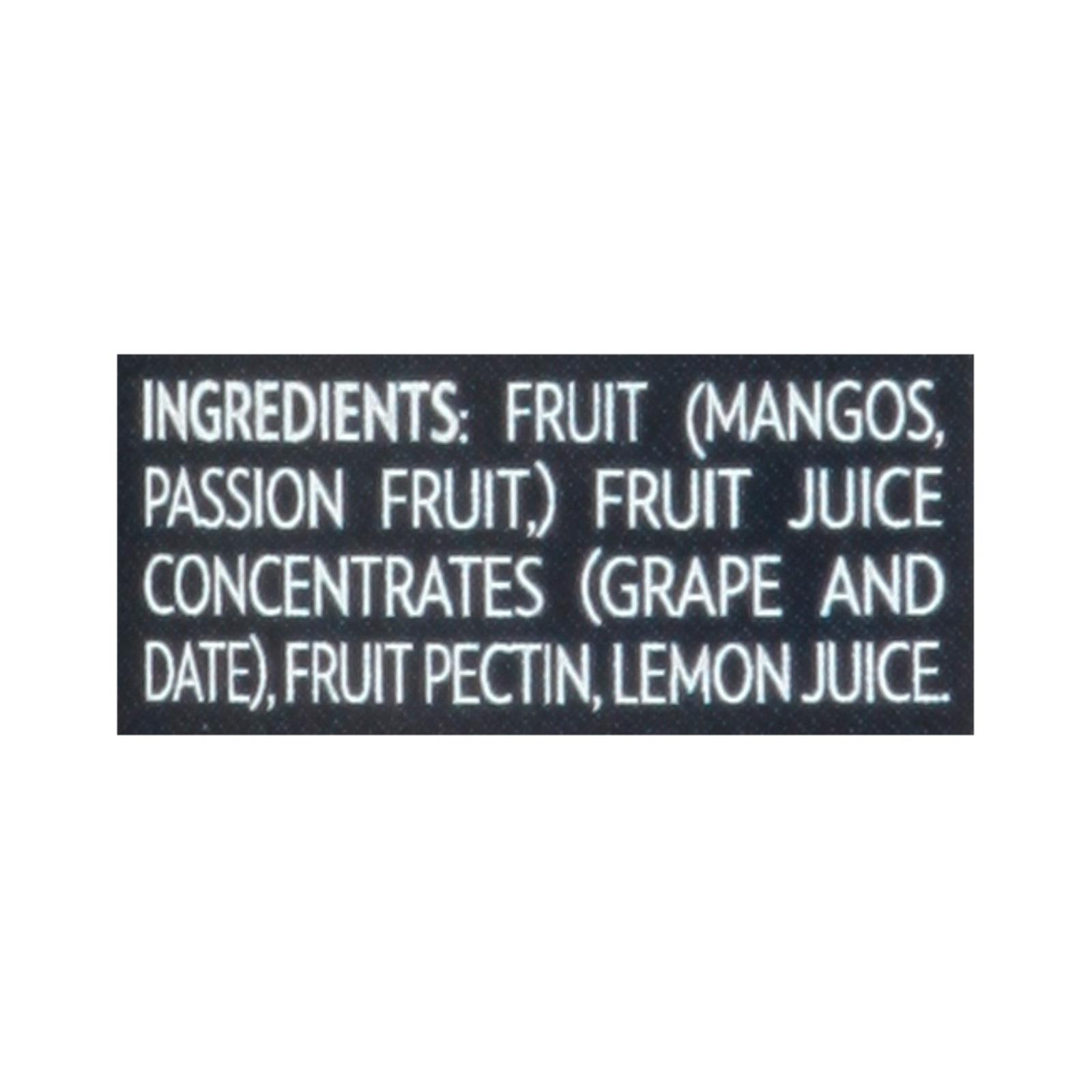 ingredients : fruit (mangos, passion fruit,) fruit juice concentrates (grape and date);fruit pectin;lemon juice