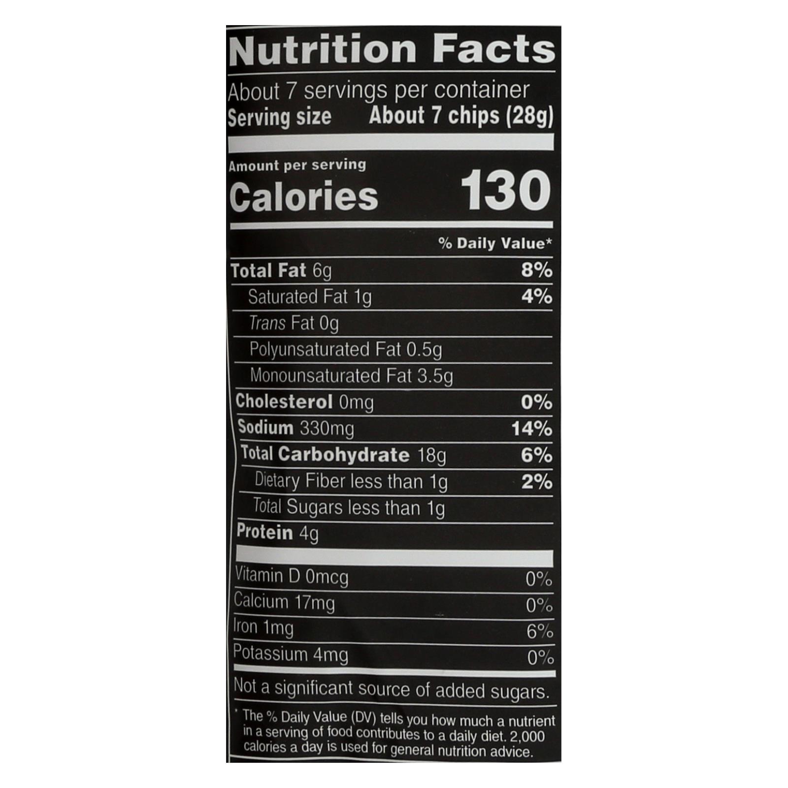 Stacy’s toasted cheddar pita chips are low in saturated fat with only 1 g. Per serving for a health-conscious snack. We don’t use any artificial colors or flavors to keep the taste pure. Each 7.33 oz. Bag contains 7 servings so you can enjoy them on several occasions. See nutrition facts panel for allergens.