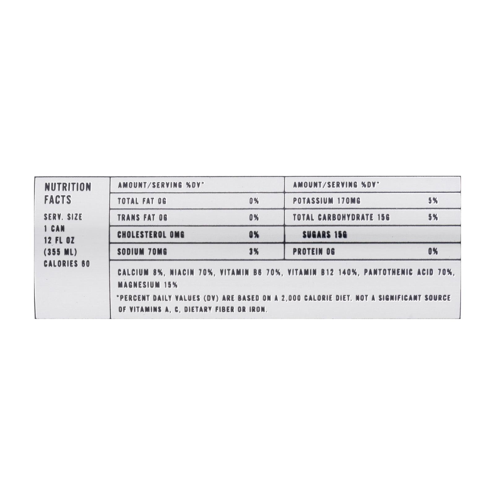 No artificial flavors. Flavored with other natural flavors. 60 calories per can. Vitamin b12 & electrolytes. Good energy. With vitamins b3, b5 and b6. A bubbly harmony of flavor, function & feeling. Naturally sweetened. 70 mg of natural caffeine. Sunshine.com.