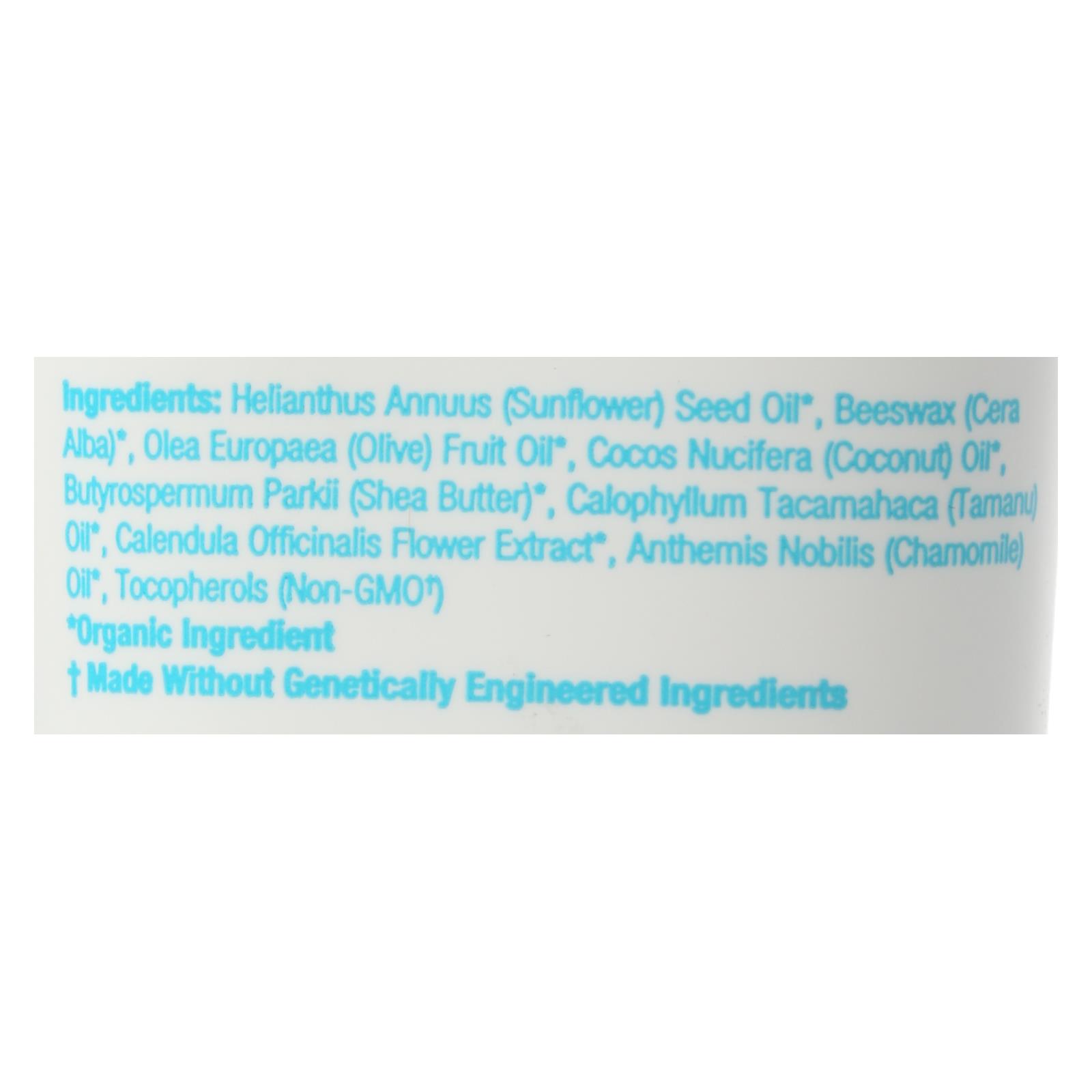 ingredients : helianthus annuus (sunflower) seed oil;beeswax (care alba);olea europaea (olive) fruit oil;cocos nucifera (coconut) oil;butyrospermum parkii (shea butter);calophyllum tacamahaca (tamanu) oil;calendula officinalis flower extract;anthemis nobilis (chamomile) oil;tocopherols (non-gmo )
