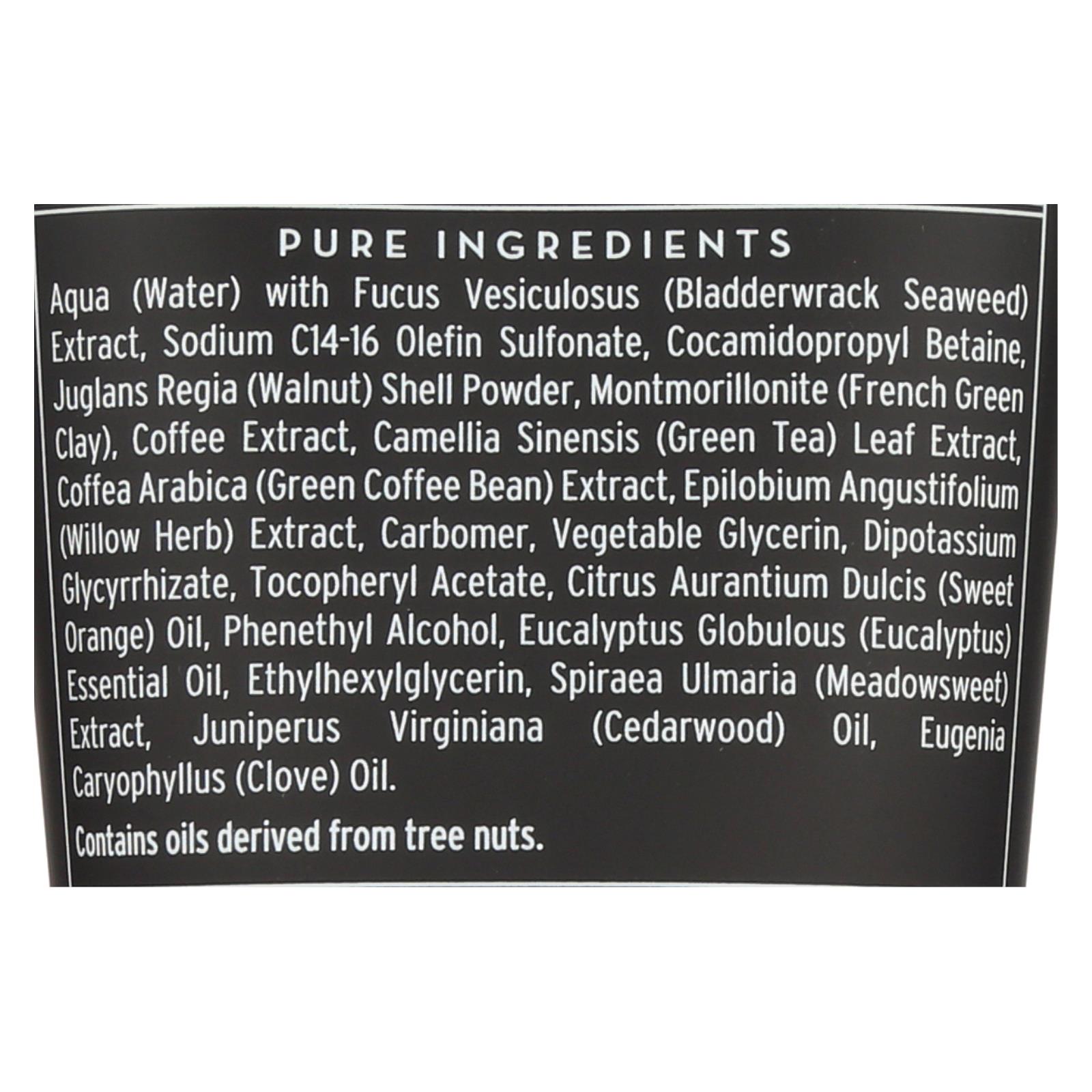 ingredients : aqua;water;with fucus vesiculosus;bladderwrack seaweed;and chlorella vulgaris extracts;juglans regia;walnut;shell powder;glycerin;cocamidopropyl betaine;sodium;c14-16;olefin sulfonate;phenethyl alcohol;ethylhexylglycerin;triethyl citrate;citrus aurantium dulcis;orange;oil;linalyl acetate;linalool;juniperus virginiana;cedarwood;eugenia caryophyllus;clove;gamma decalactone;aldehyde c-18;ionone beta;hexenol cis-3;hexenyl acetate cis-3;melon aldehyde;citronellol;phenyl ethyl acetate;eucalyptus globu
