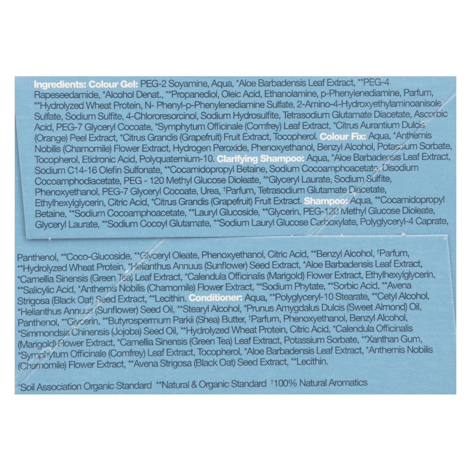 ingredients : colour gel: peg-2 soyamine;aqua;aloe barbadensis leaf extract;peg-4 rapeseedamide;alcohol denat;propanediol;oleic acid;ethanolamine;p-phenylenediamine;parfum;hydrolyzed wheat protein;n- phenyl-p-phenylenediamine sulfate;2-amino-4-hydroxyethylaminoanisole sulfate;sodium sulfite;4-chlororesorcinol;sodium hydrosulfite;tetrasodium glutamate diacetate;ascorbic acid;peg-7 glyceryl cocoate;symphytum officinale;comfrey;leaf extract;citrus aurantium dulcis;orange;peel extract;citrus grandis;grapefruit;fr