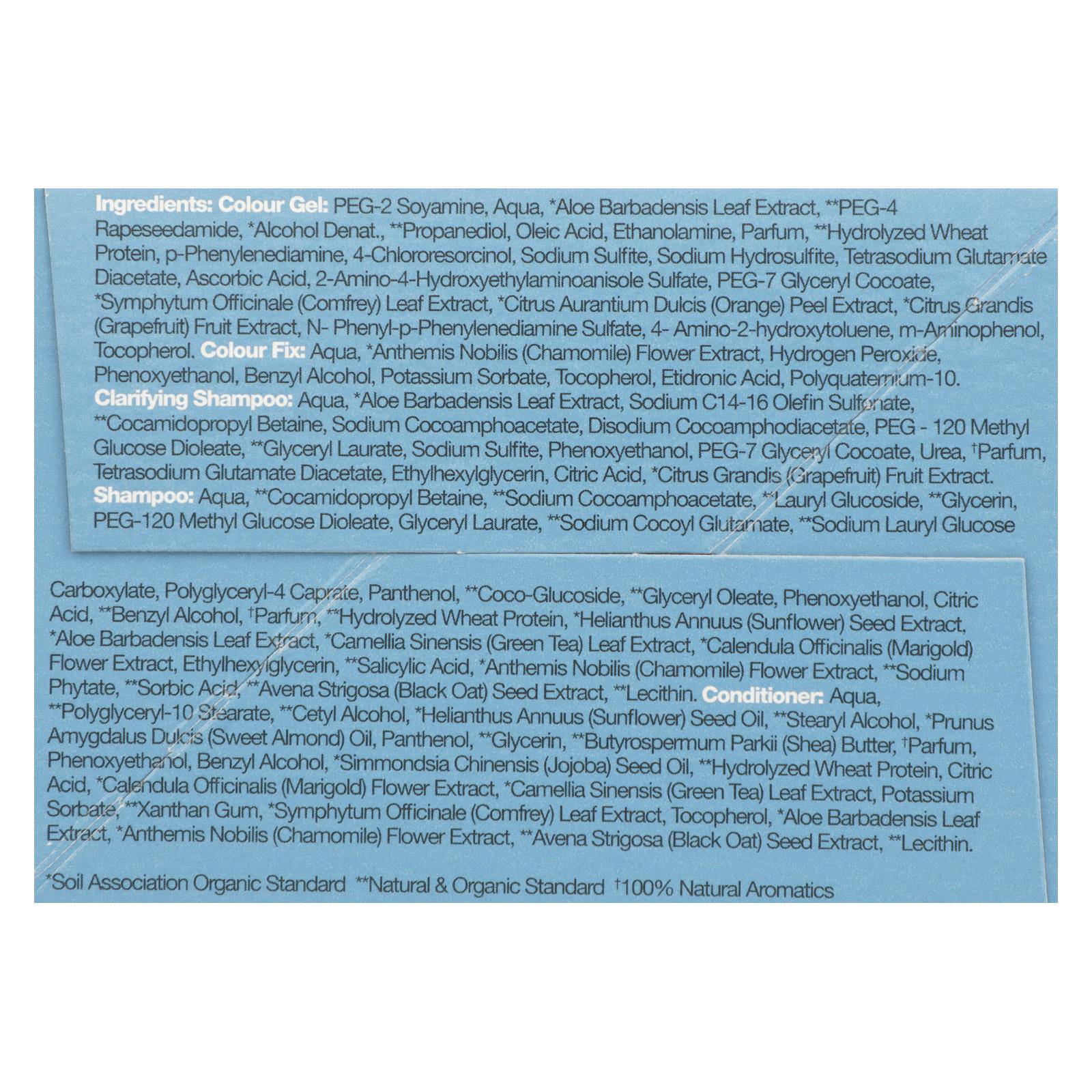 ingredients : colour gel: peg-2 soyamine;aqua;aloe barbadensis leaf extract;peg-4 rapeseedamide;alcohol denat;propanediol;oleic acid;ethanolamine;parfum;hydrolyzed wheat protein;p-phenylenediamine;4-chlororesorcinol;sodium sulfite;sodium hydrosulfite;tetrasodium glutamate diacetate;ascorbic acid;2-amino-4-hydroxyethylaminoanisole sulfate;peg-7 glyceryl cocoate;symphytum officinale;comfrey;leaf extract;citrus aurantium dulcis;orange;peel extract;citrus grandis;grapefruit;fruit extract;n-phenyl-p-phenylenediami
