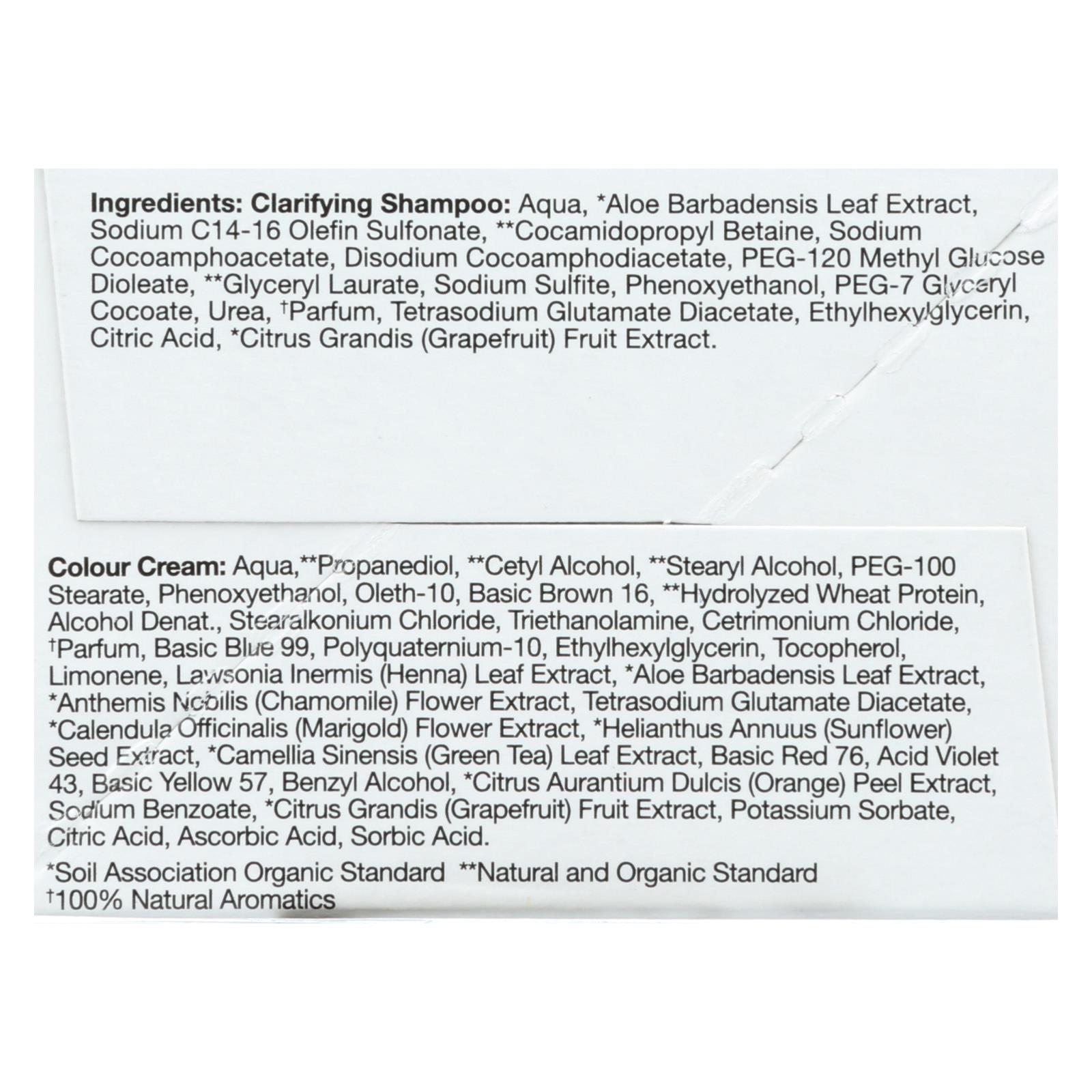 ingredients : aqua;propanediol;cetyl alcohol;stearyl alcohol;peg-100 stearate;phenoxyethanol;oleth-10;basic brown 16;hydrolyzed wheat protein;alcohol denat;stearalkonium chloride;†parfum;basic blue 99;polyquaternium-10;ethylhexylglycerin;tocopherol;limonene;lawsonia inermis;henna;leaf extract;aloe barbadensis leaf extract;anthemis nobilis;chamomile;flower extract;tetrasodium glutamate diacetate;calendula officinalis;marigold;helianthus annuus;sunflower;seed extract;camellia sinensis;green tea;basic red 76;ac