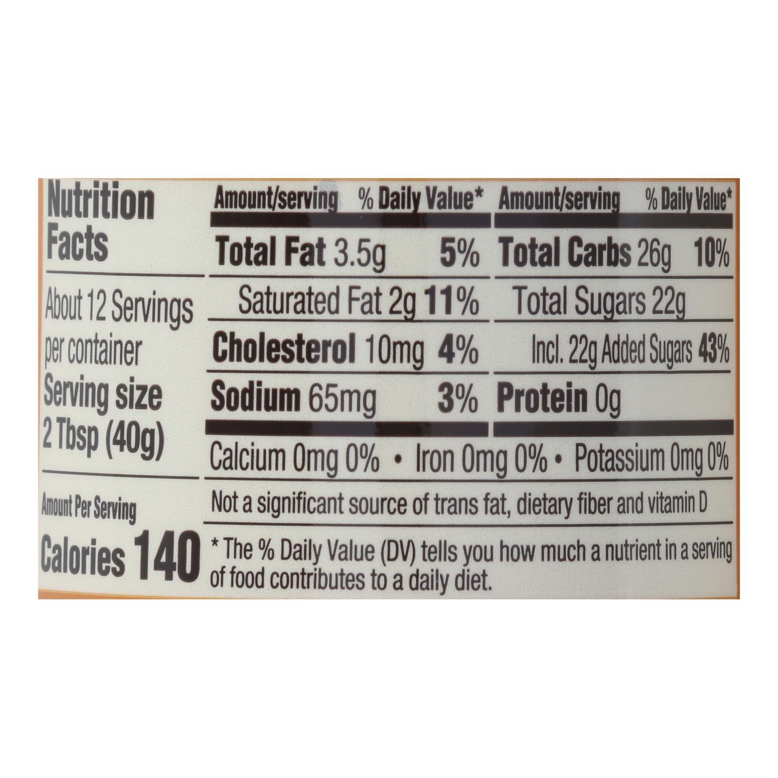 ingredients : corn syrup;sugar;invert sugar;heavy cream;water;butter (cream, salt);nonfat milk;less than 1% of lecithin;salt;natural flavors;sodium bicarbonate;caramel color