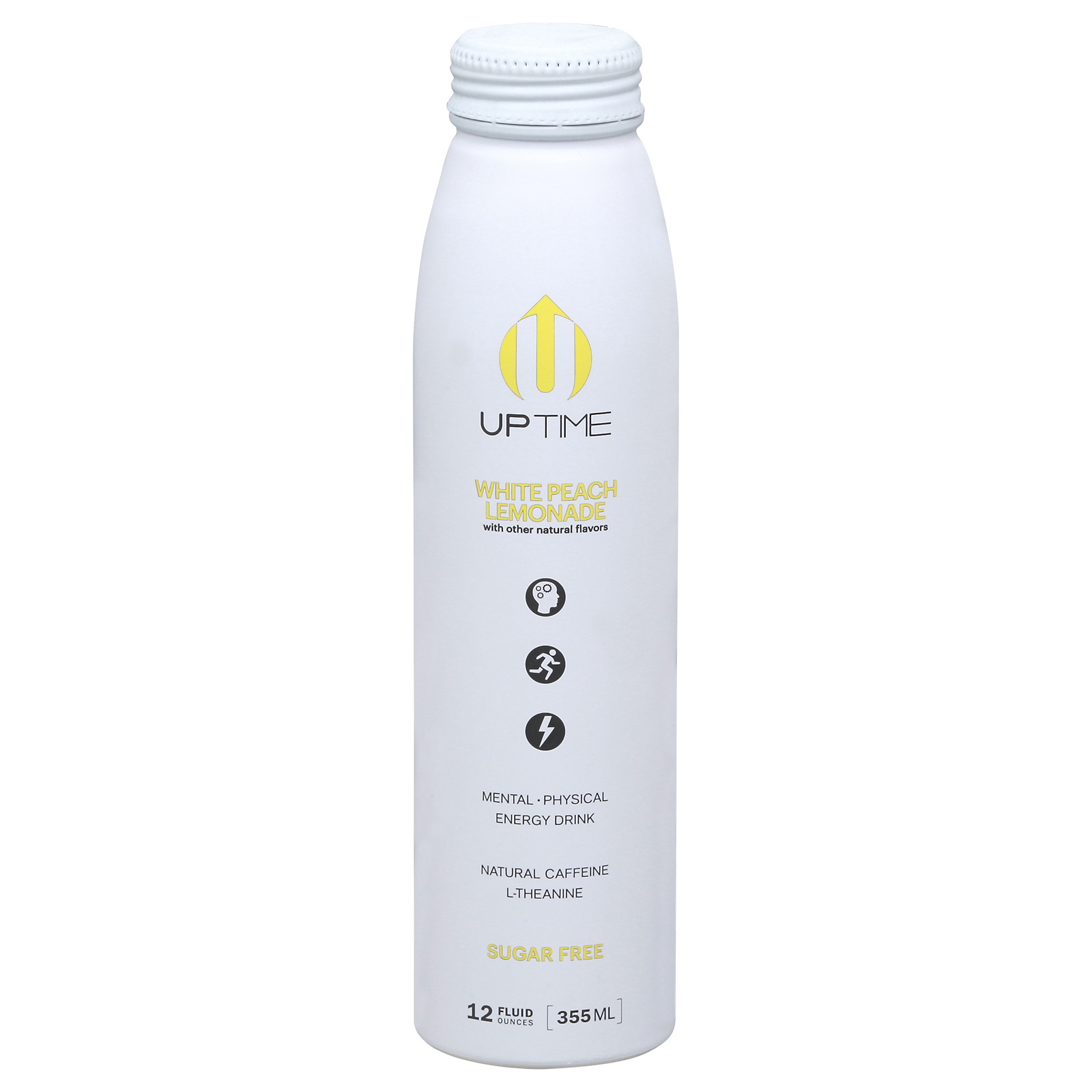 White peach lemonade with other natural flavors. Sugar free. No gluten. Vegan. Contains 142 mg of natural caffeine. Non gmo. Mental. Physical. Natural caffeine. L-theanine. Awaken the senses with a refreshing and sparking blend of white peach, lemonade and other natural flavors. Our exclusive blend of ingredients will help you perform at your best. Uptime – how energy should feel. Uptimeenergy.com. Try uptime tablets.