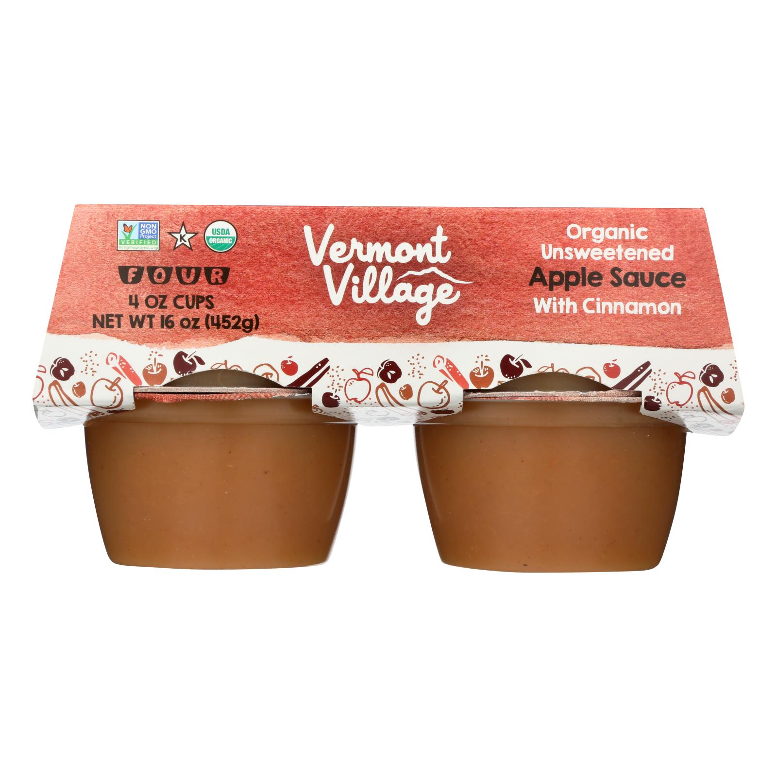 Vermont village organic unsweetened applesauce with cinnamon is delicious snack food in ready-to-serve cups. Kettle-cooked whole apples bring on the flavor in this fruity treat. Made from four organic ingredients and enriched with vitamin c, applesauce cups add flavor and nutrition to brown-bag lunches and snacks on-the-go. The 16 oz. Package holds four 4 oz. Cups of applesauce.