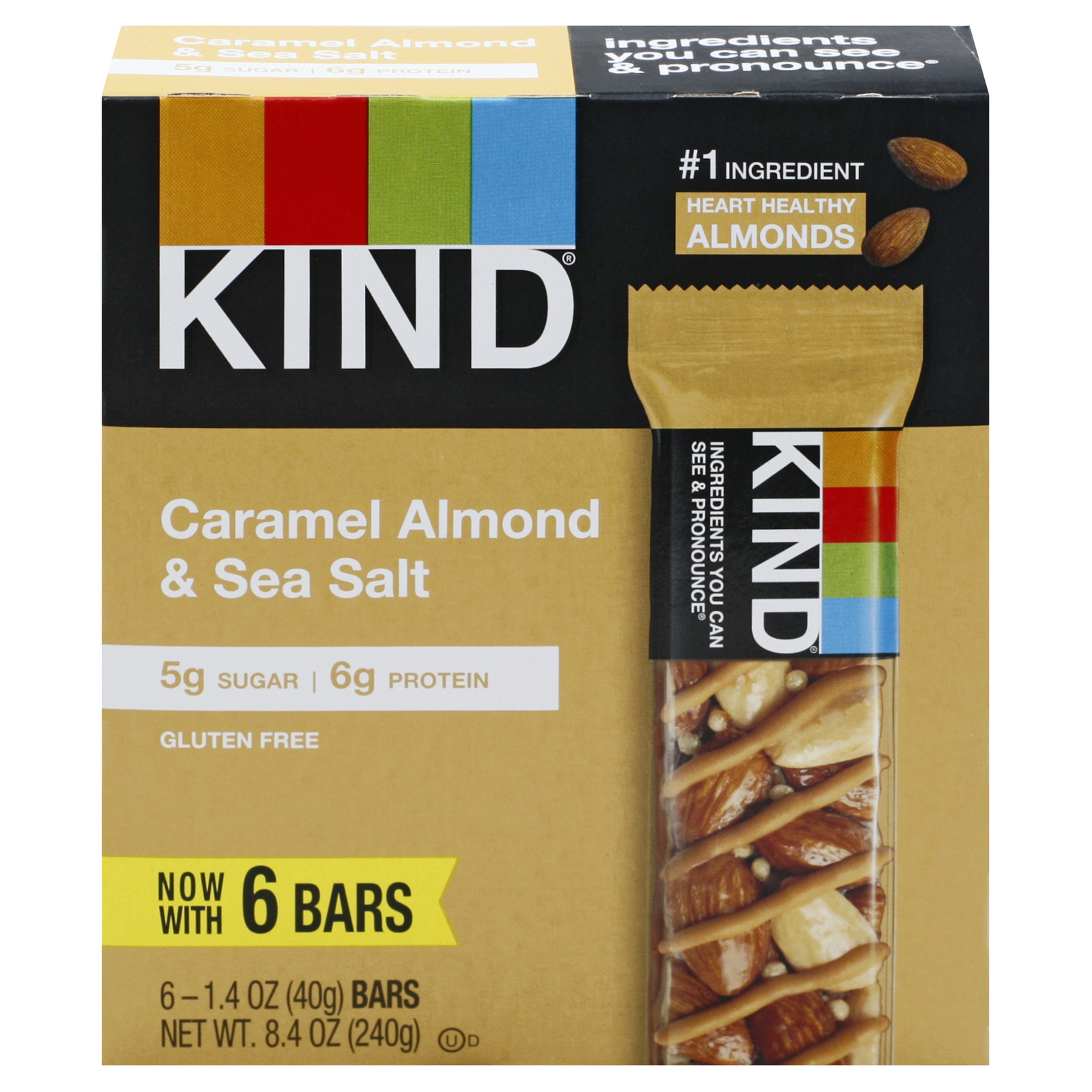 Kind – bar mini caramel almond sea salt – case of 8-10/.7 ozcountry of origin : usa, new yorkis gluten free : yesis gmo free : yesis kosher : yessize : 10/.7 ozpack of : 8selling unit : caseingredients : almonds;chicory root fiber;honey;glucose syrup;palm kernel oil;sugar;rice flour;milk powder;sea salt;carob powder;soy lecithin;natural flavor;annatto -